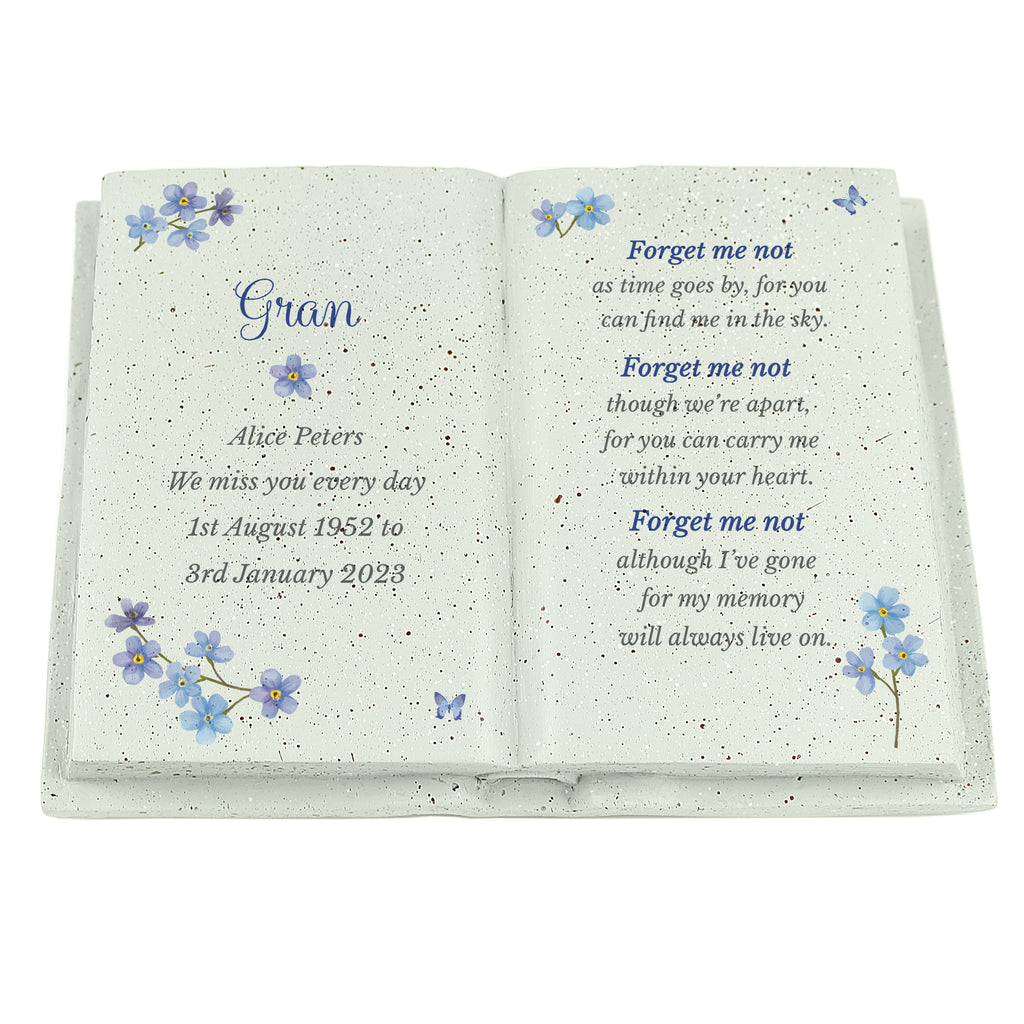 Featuring a beautiful poem on the right, this resin book can be personalised with a name and personal message as below: