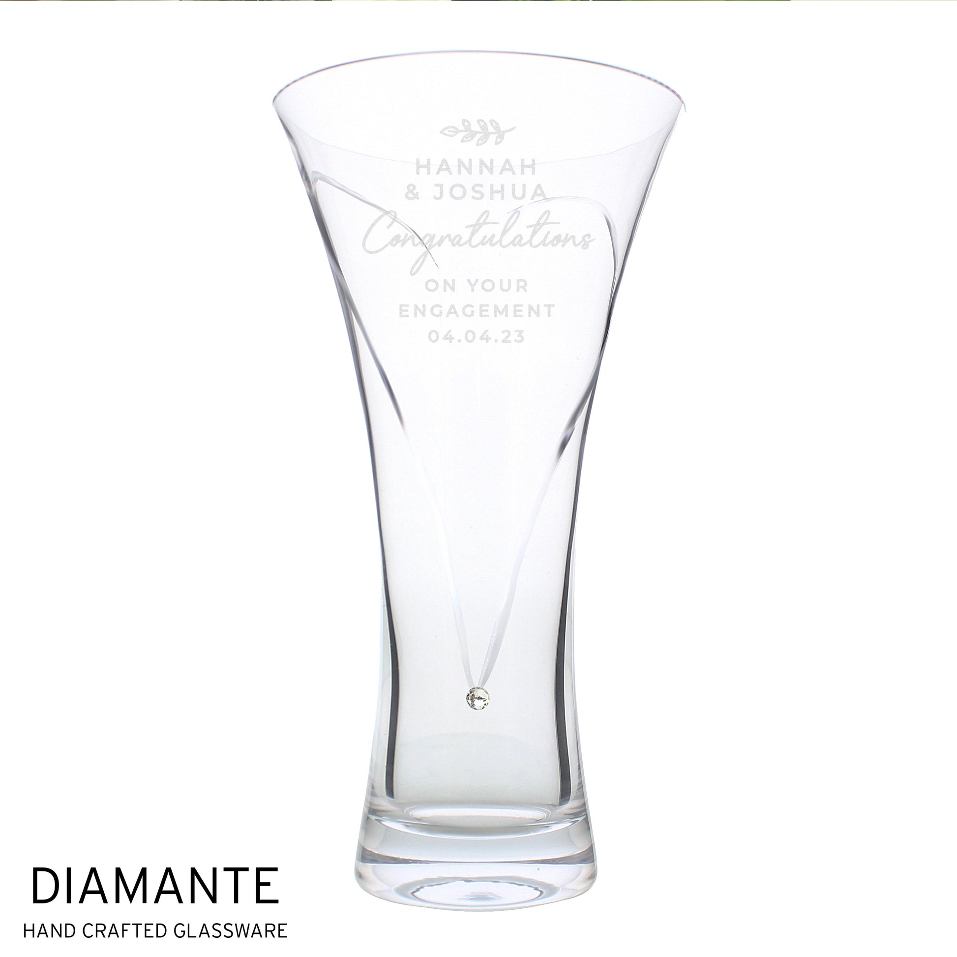 Personalised Free Text Botanical Hand Cut Diamante Heart Vase