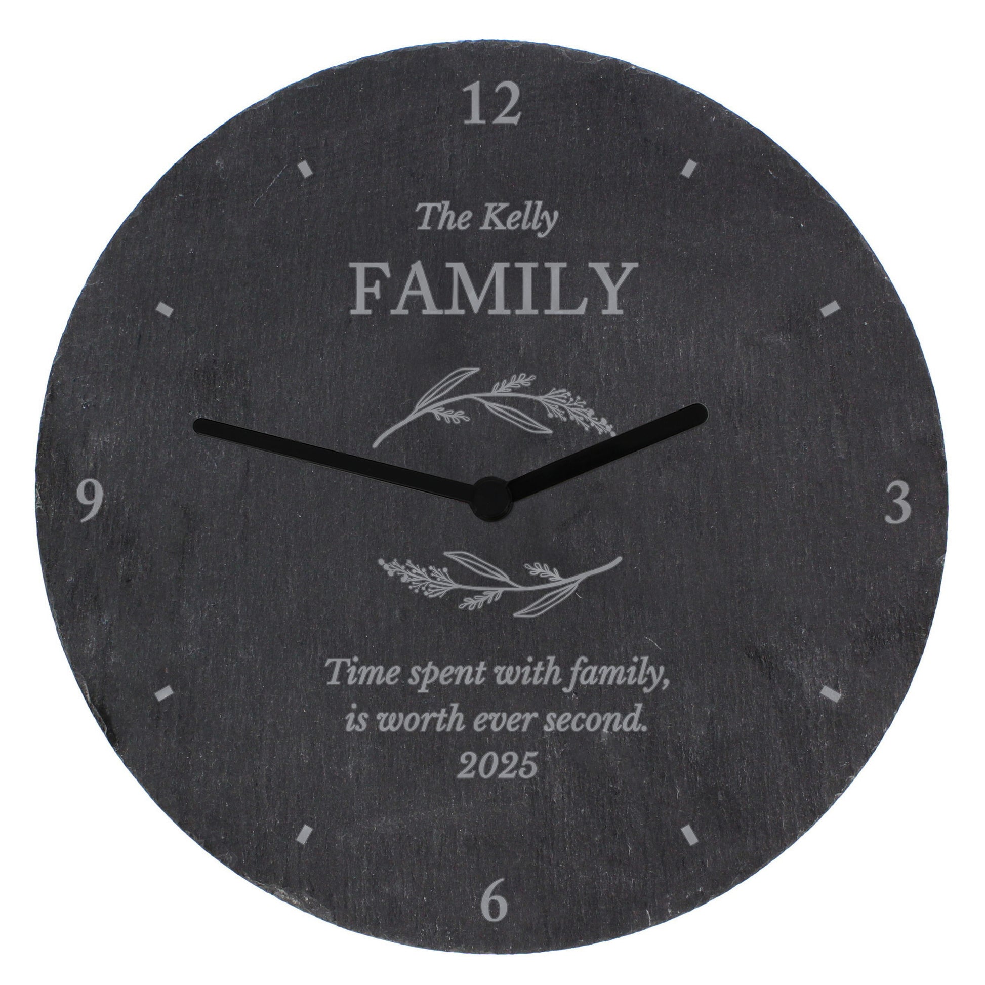 Personalised Free Text Botanical Slate Clock