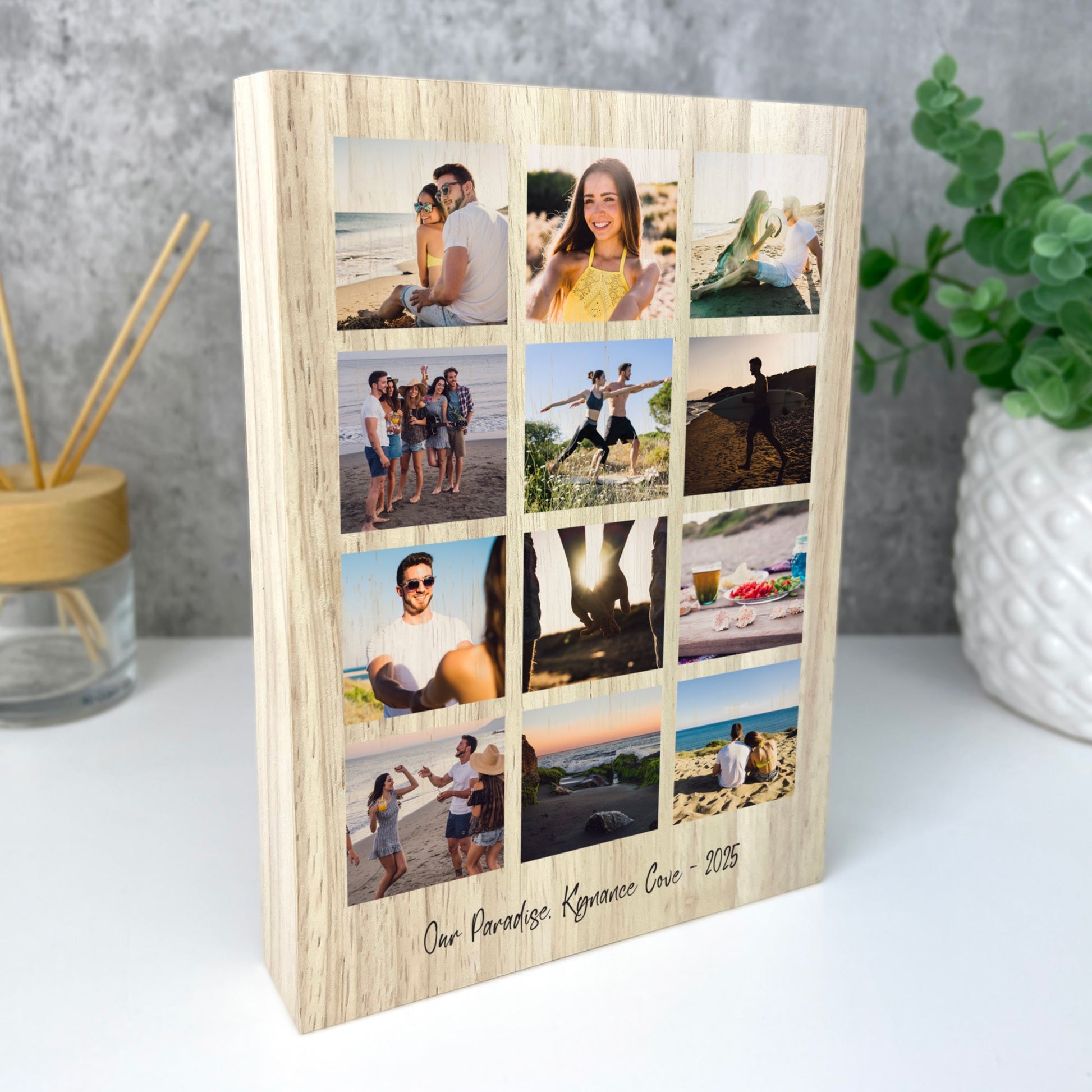 This stunning freestanding wooden photo block, measuring 21 x 15 x 3cm, is a meaningful gift for any special event. Customise it with twelve cherished photos and a thoughtful message to create a unique keepsake.