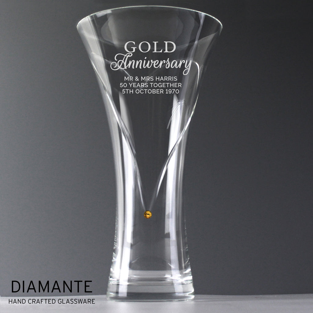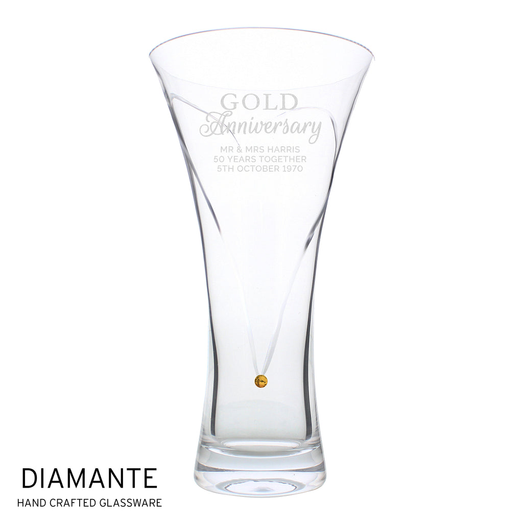 Personalised Gold Anniversary Large Hand Cut Diamante Heart Vase