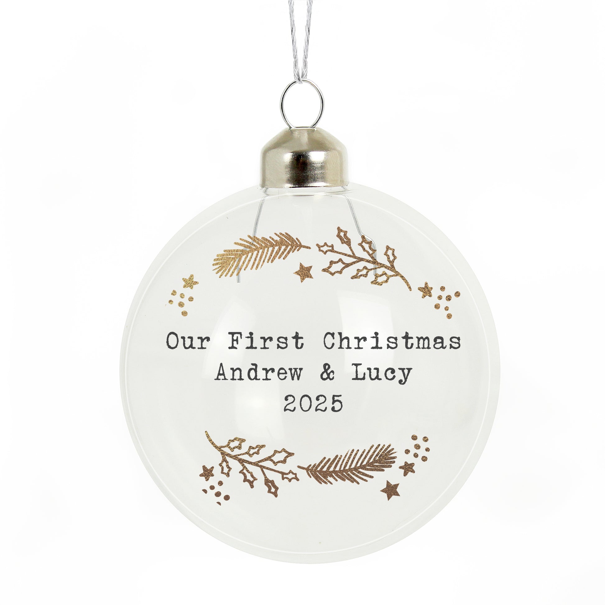 Personalise this bauble with 3 message lines with up to 20 characters available per line.