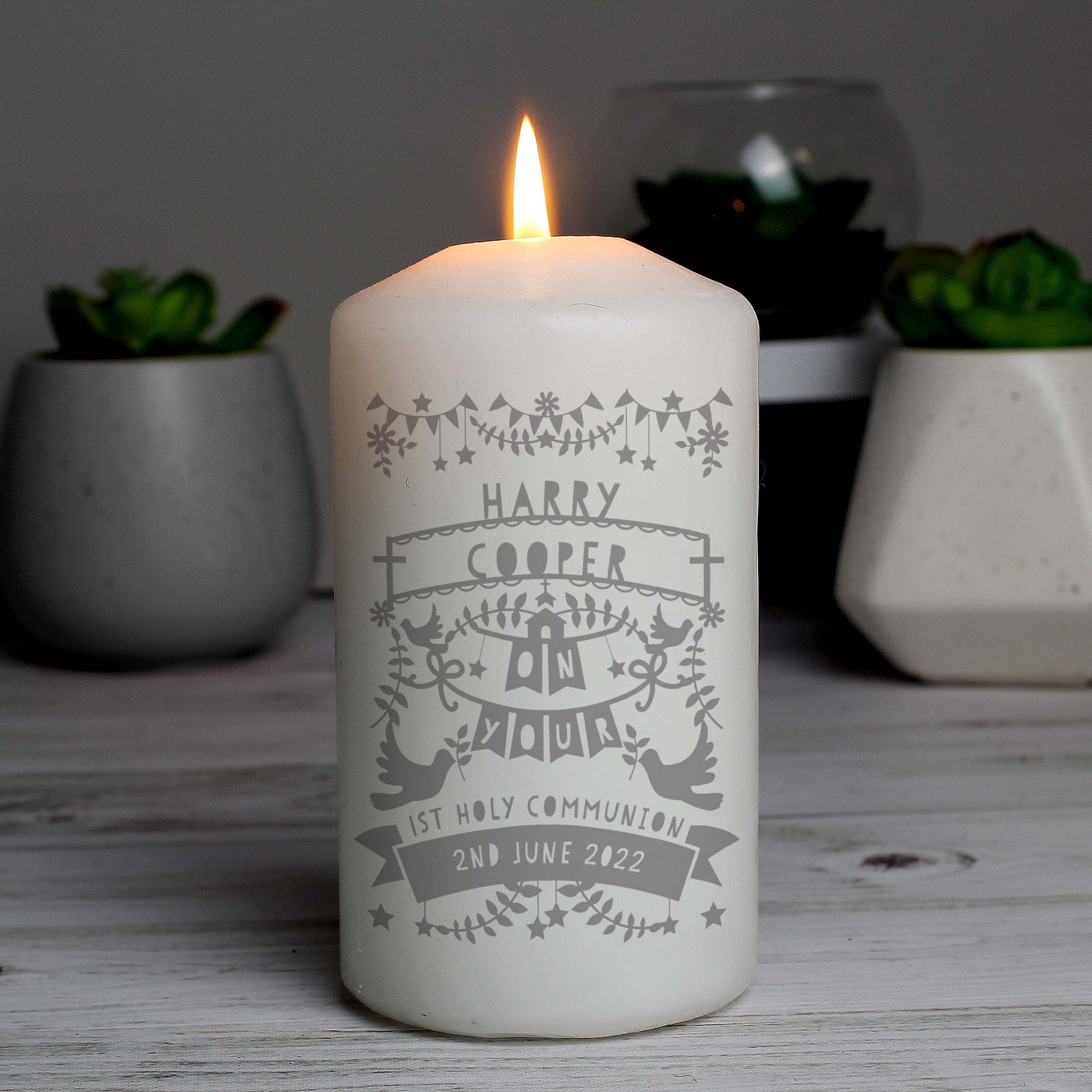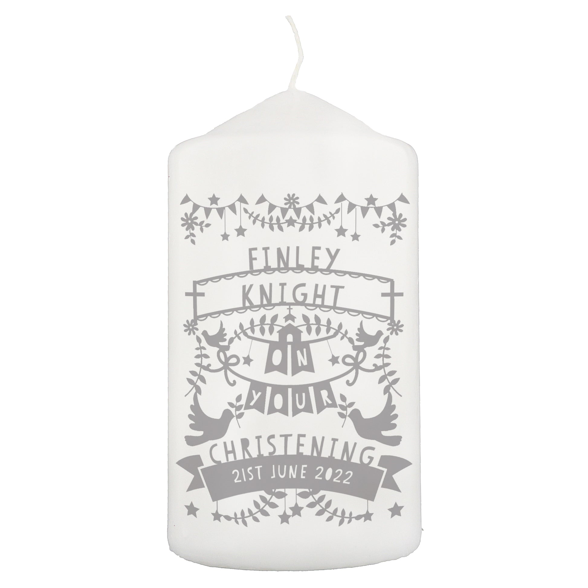 Personalised Grey Papercut Style Pillar Candle