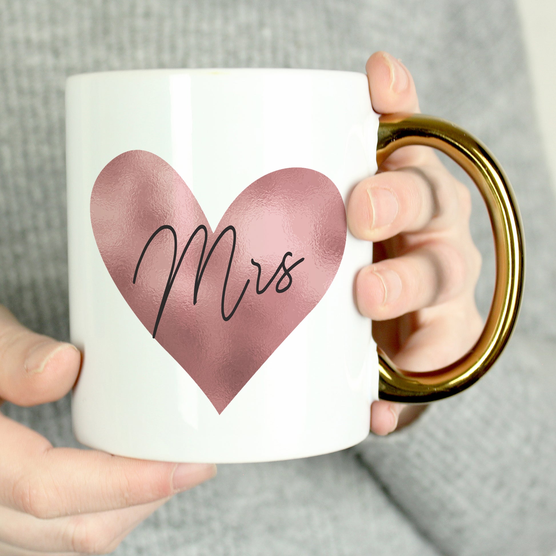 Personalised Heart Gold Handled Mug