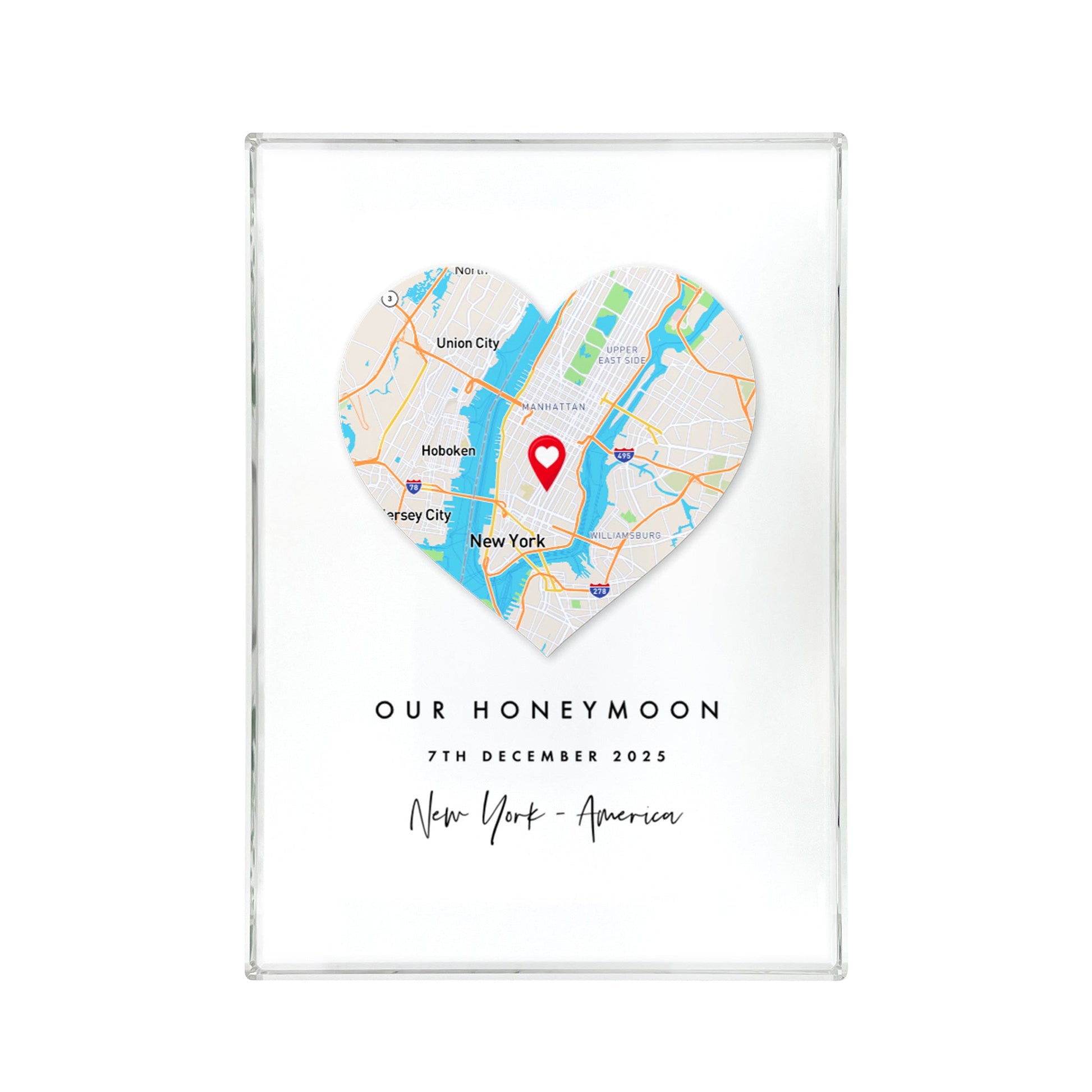 Personalised Heart Map Location Giant Crystal Block (19.5cm x 14cm)