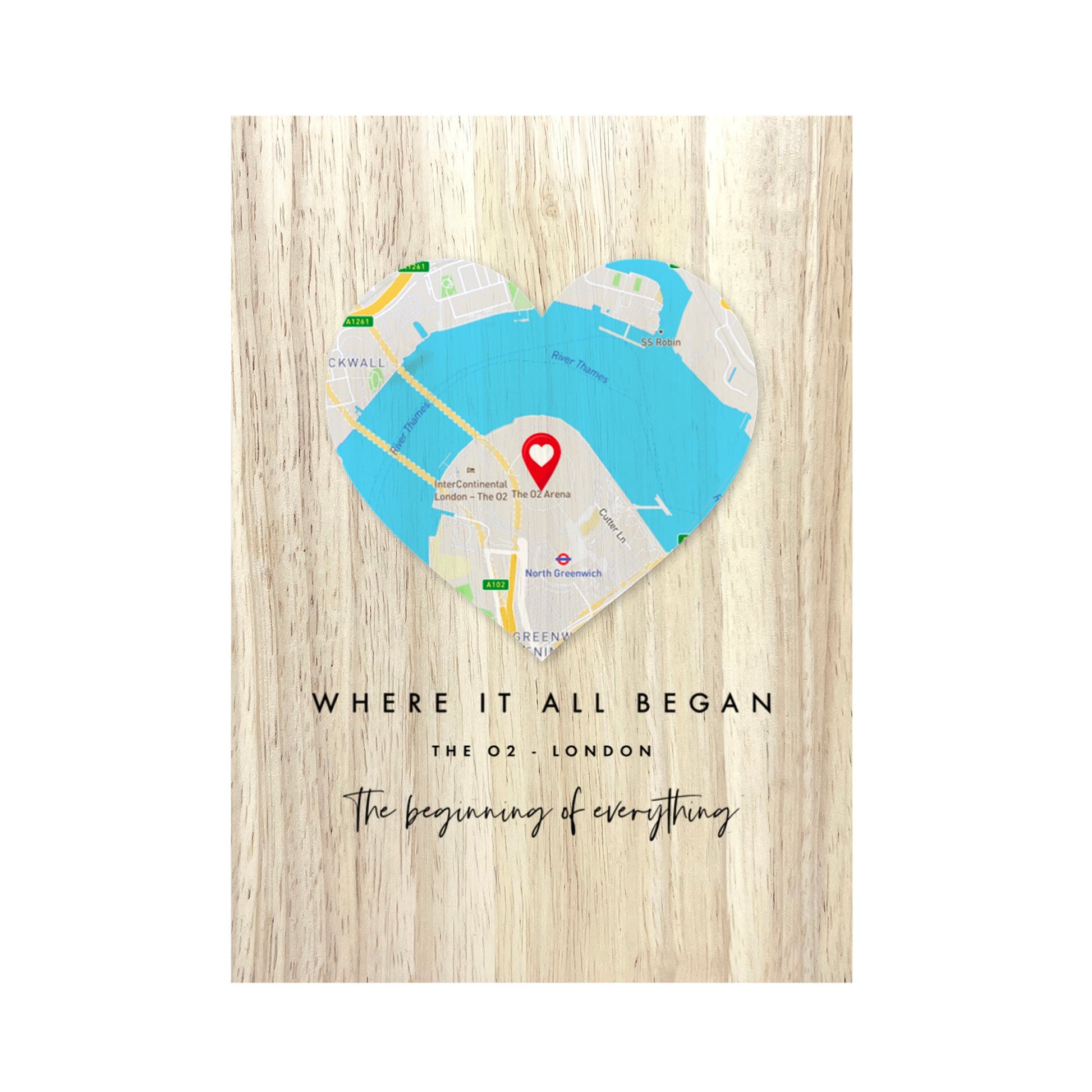 Personalised Heart Map Location Giant Wooden Block (21cm x 15cm)