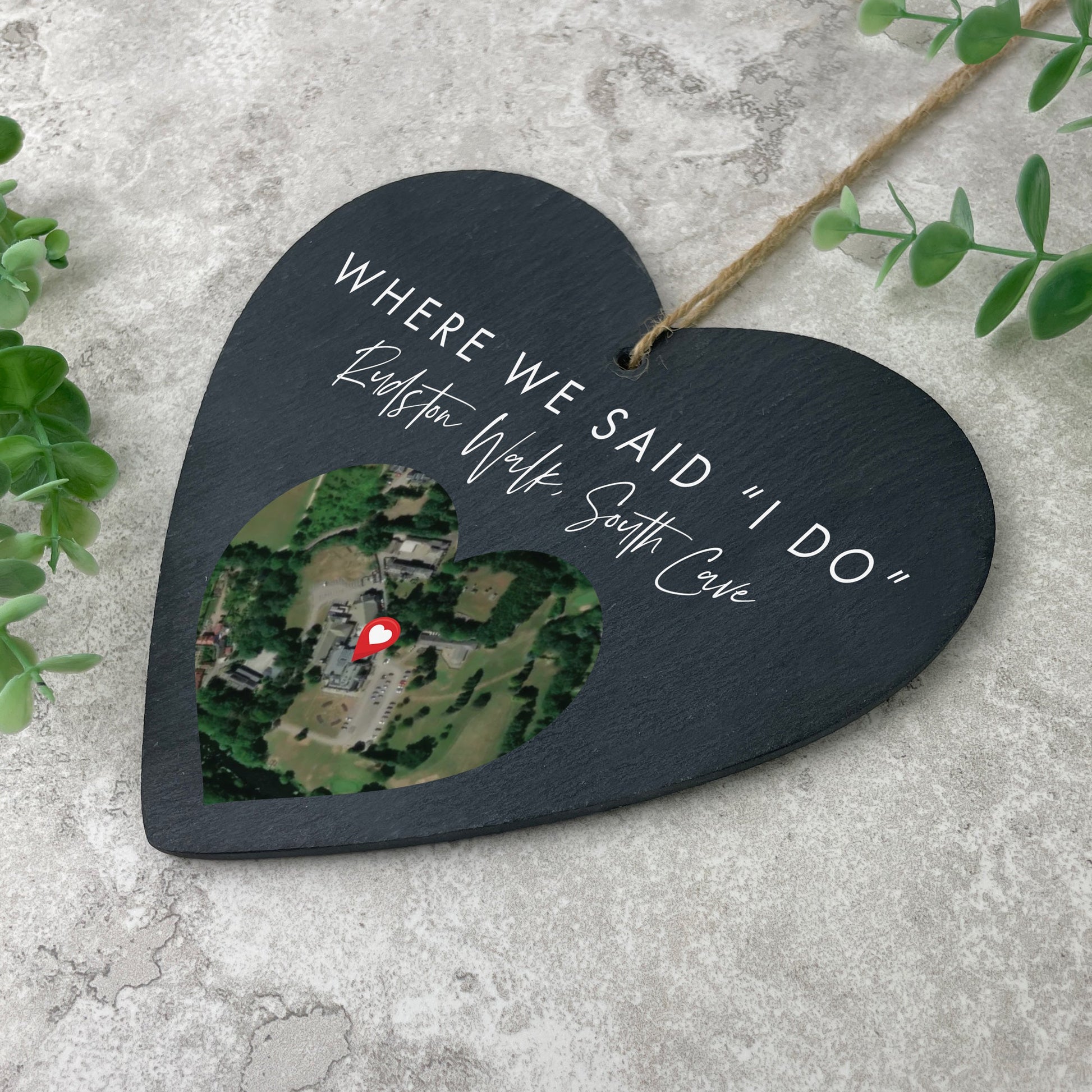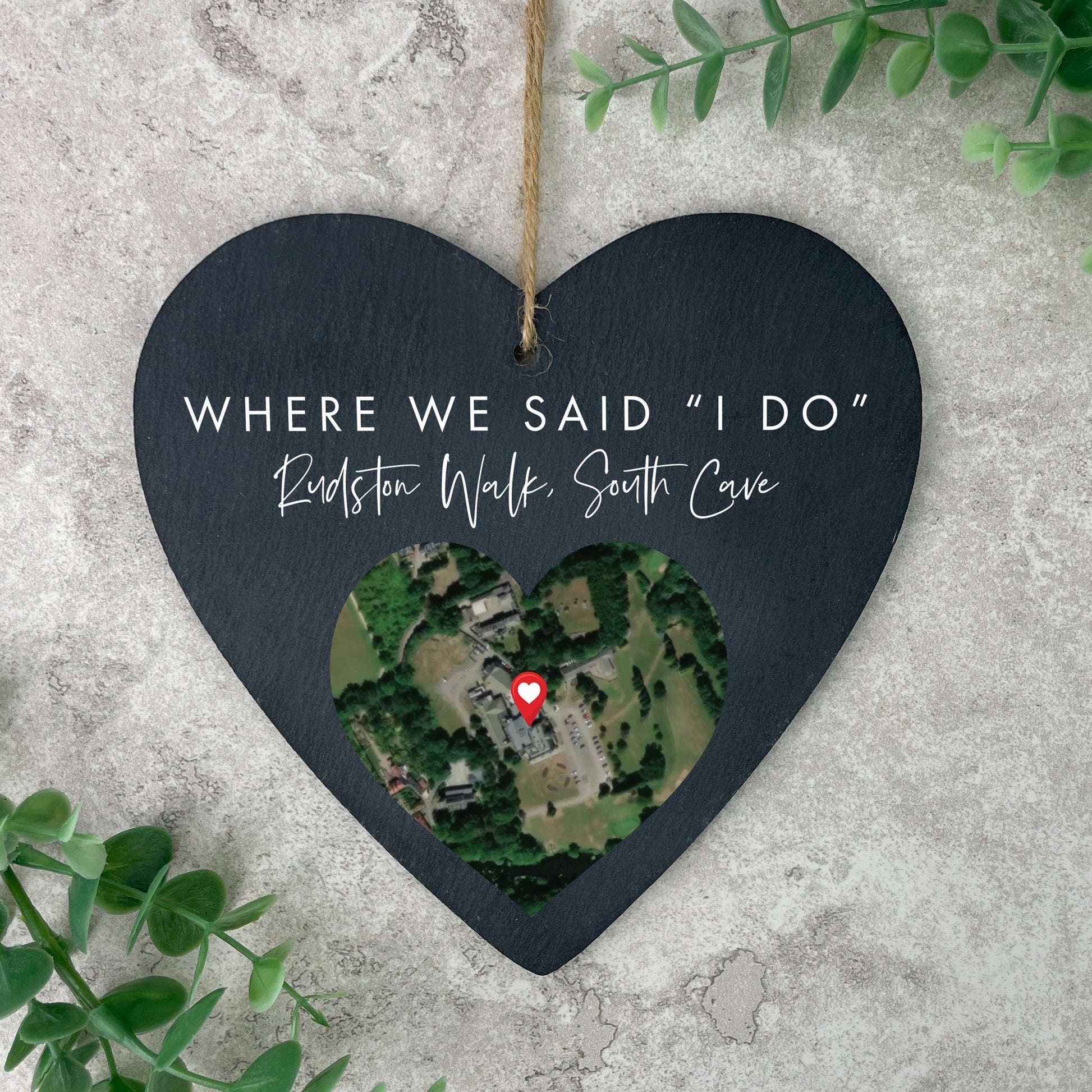Personalised Heart Map Location Slate Hanging Heart Decoration 15 x 16cm
