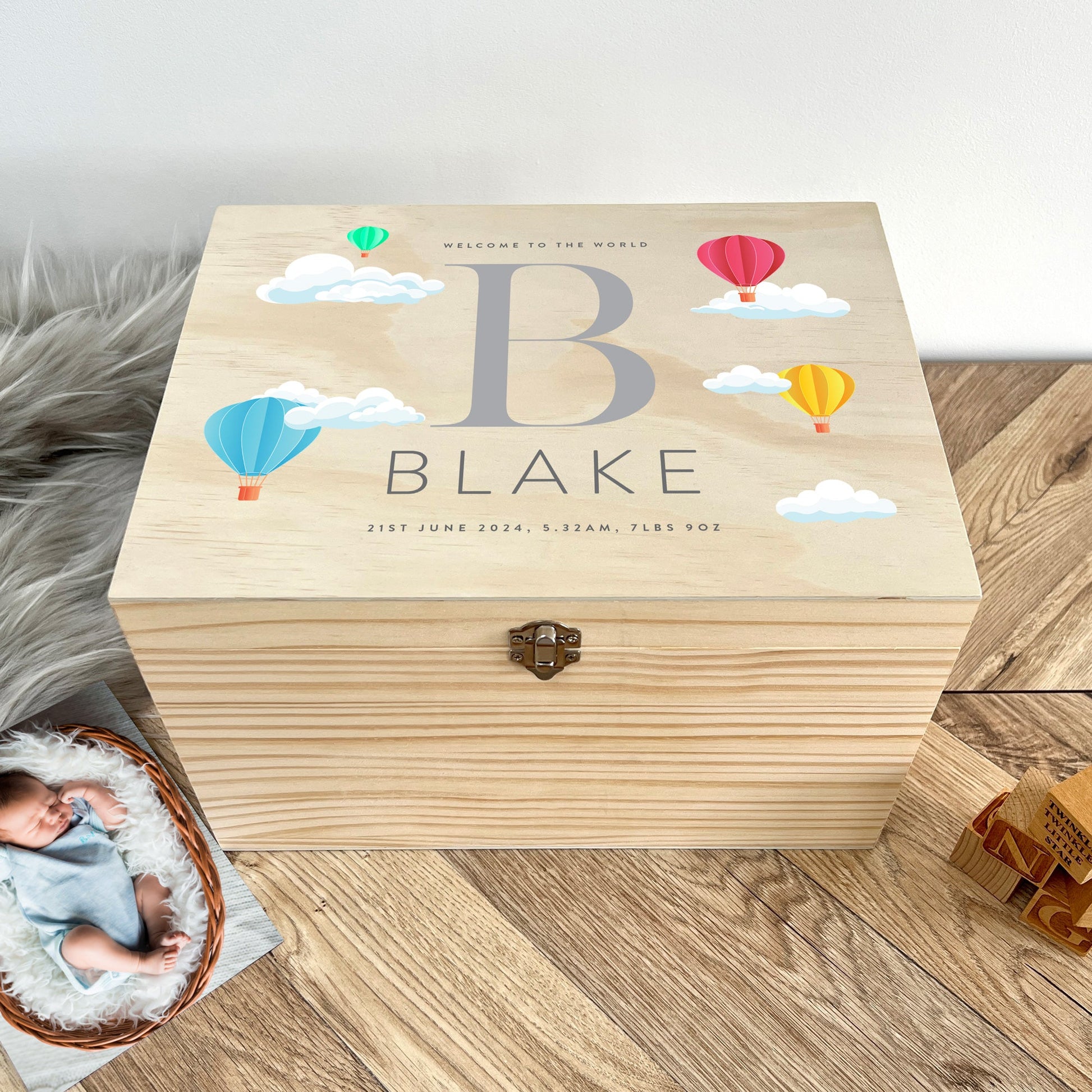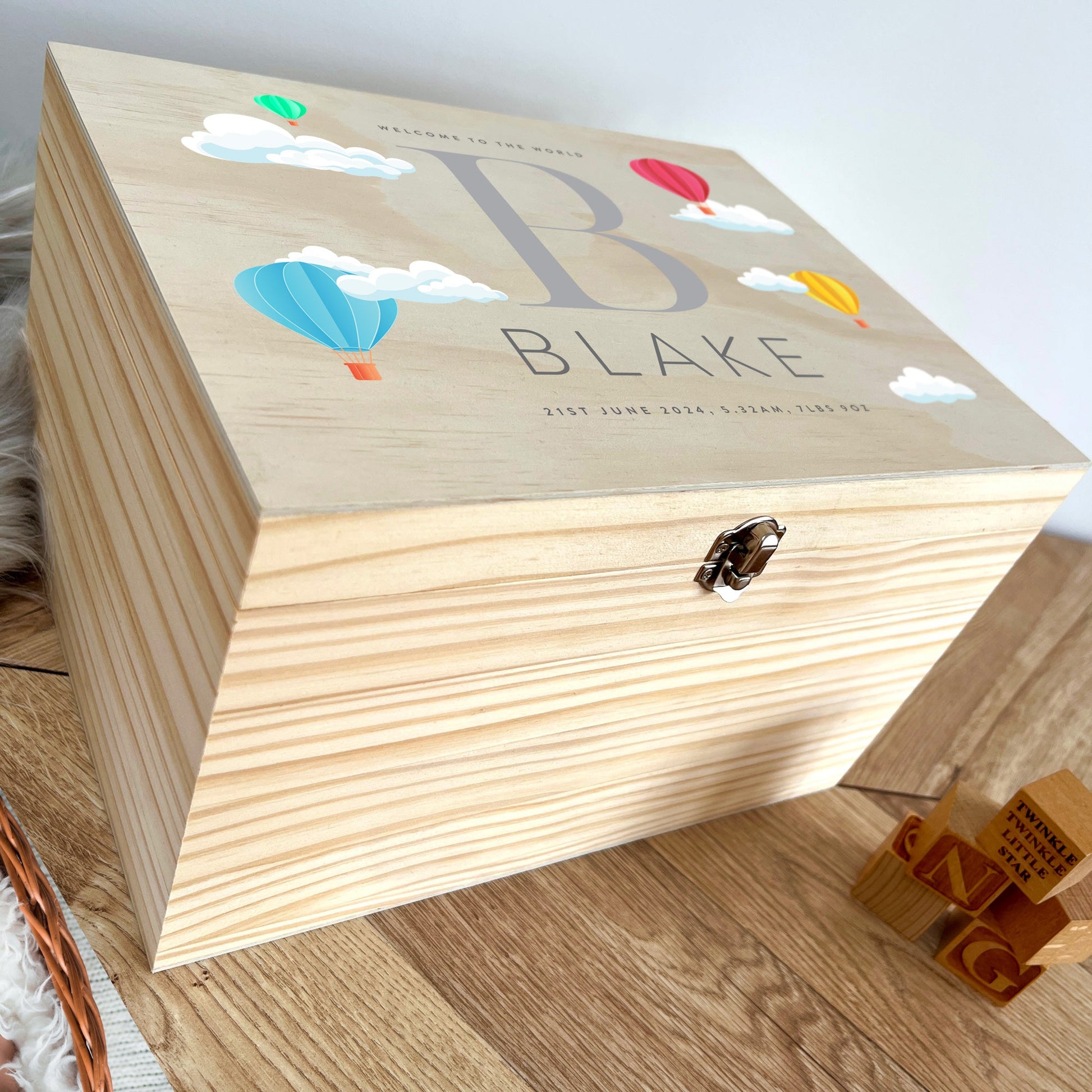 Personalised Hot Air Balloon New Baby Keepsake Box - 5 Sizes (16cm | 20cm | 26cm | 30cm | 36cm)