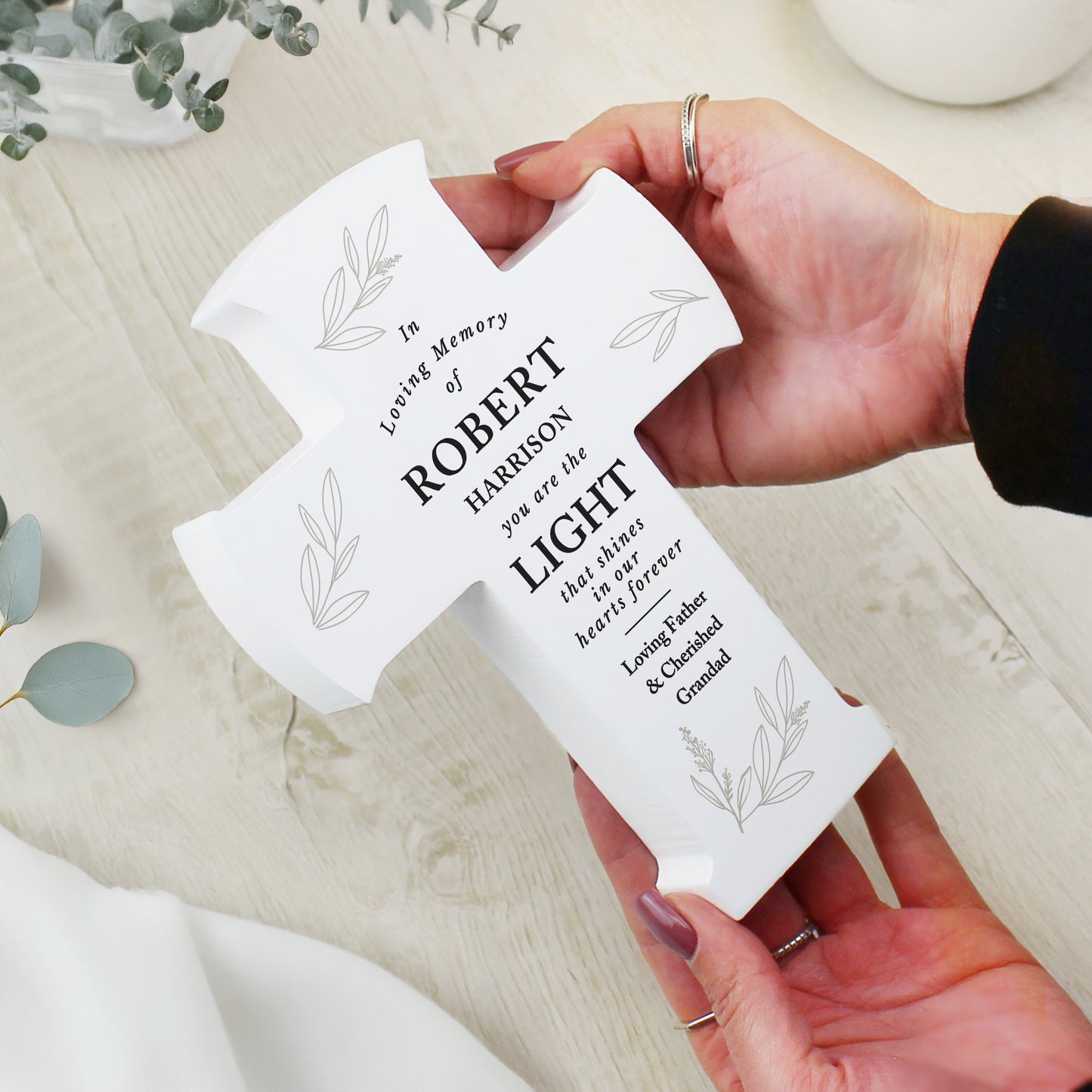 Crafted with care, this elegant cross ornament can be personalised with a message over 5 lines, making it a truly personal tribute.