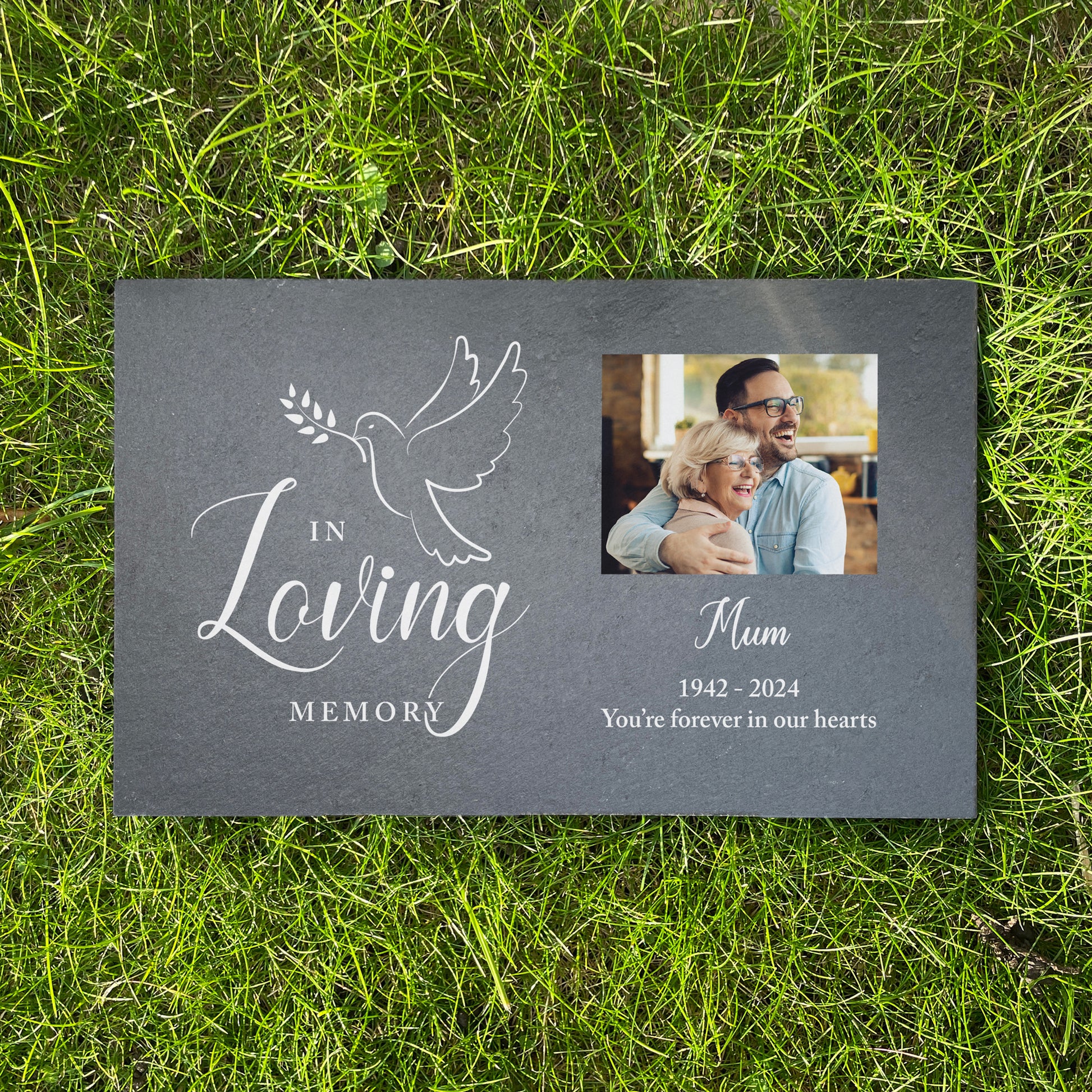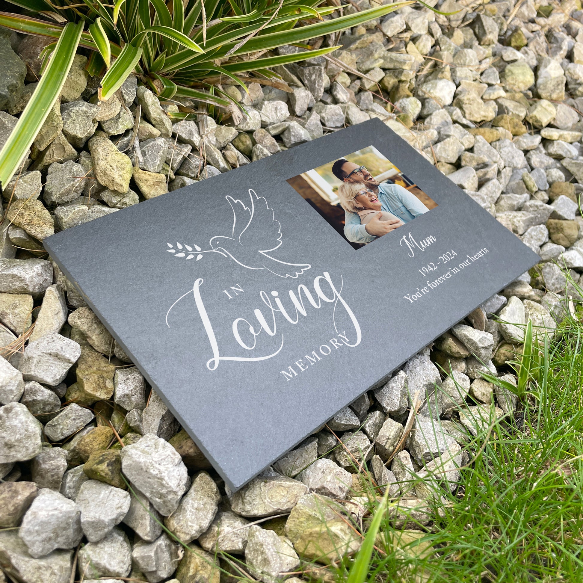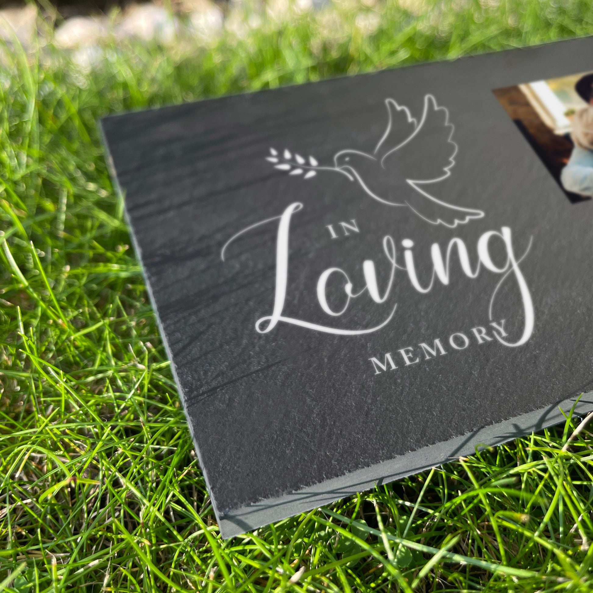 Personalised In Loving Memory Dove Photo Slate Grave Marker 25 x 15cm