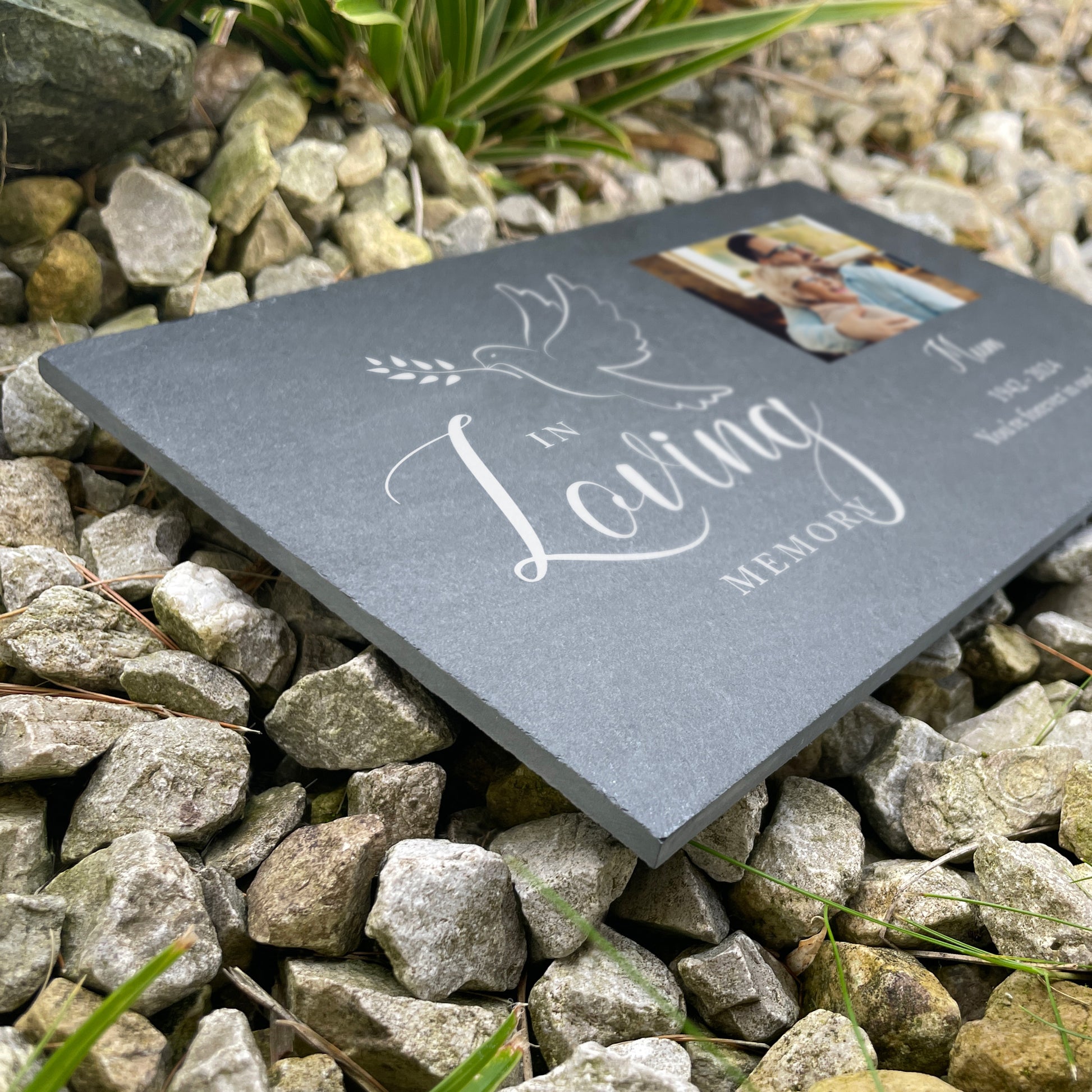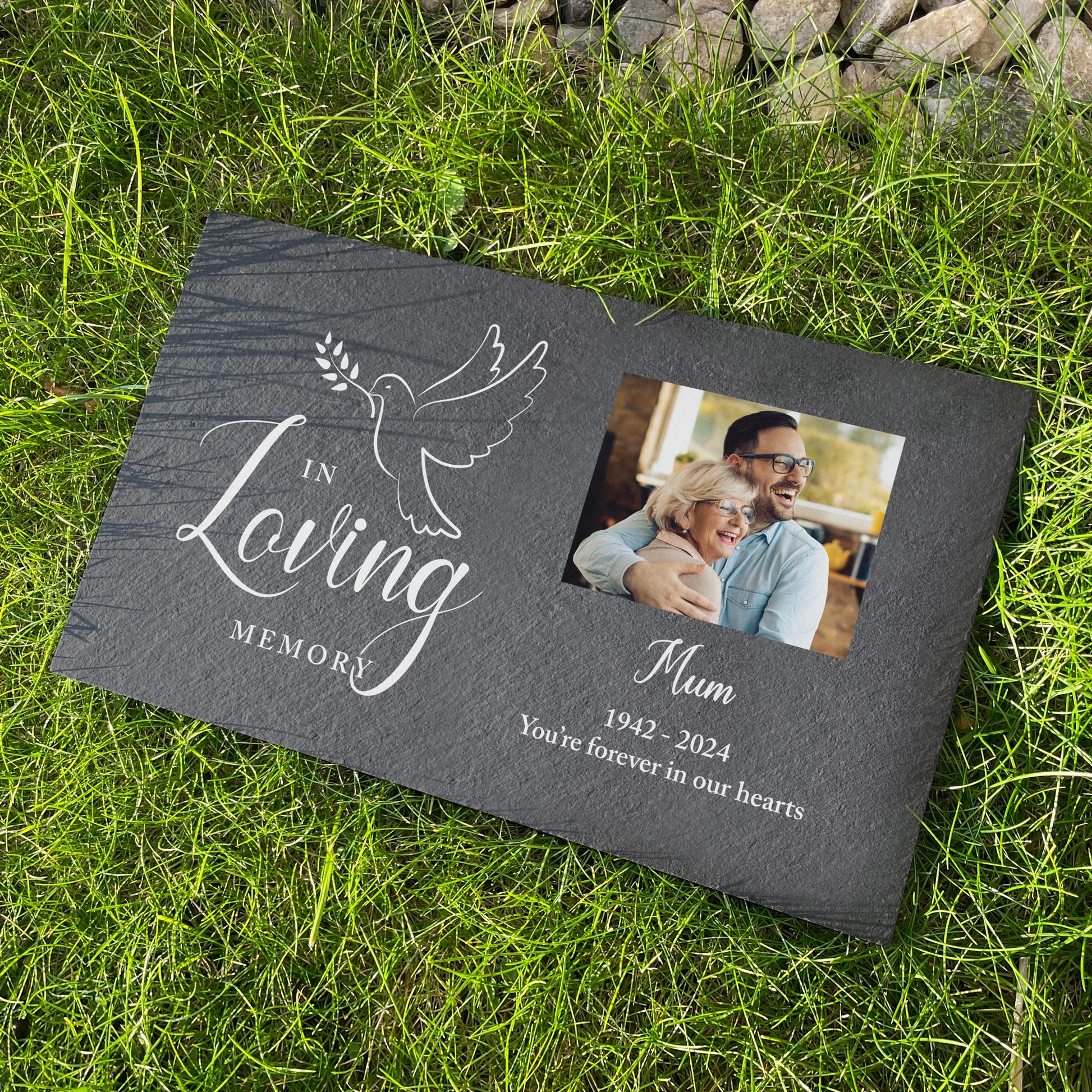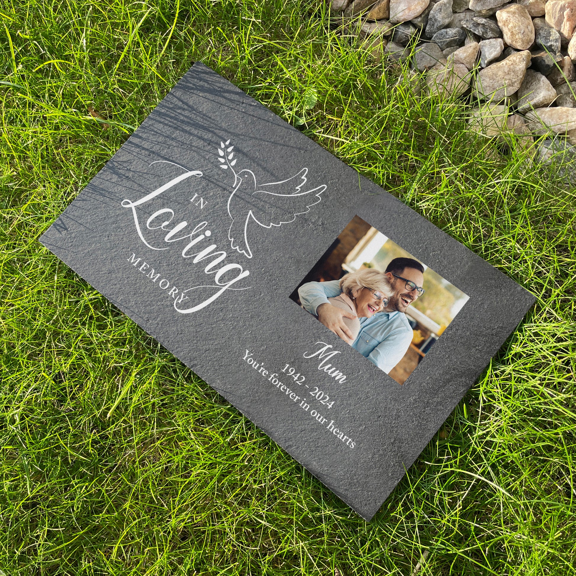 Personalised In Loving Memory Dove Photo Slate Grave Marker 25 x 15cm