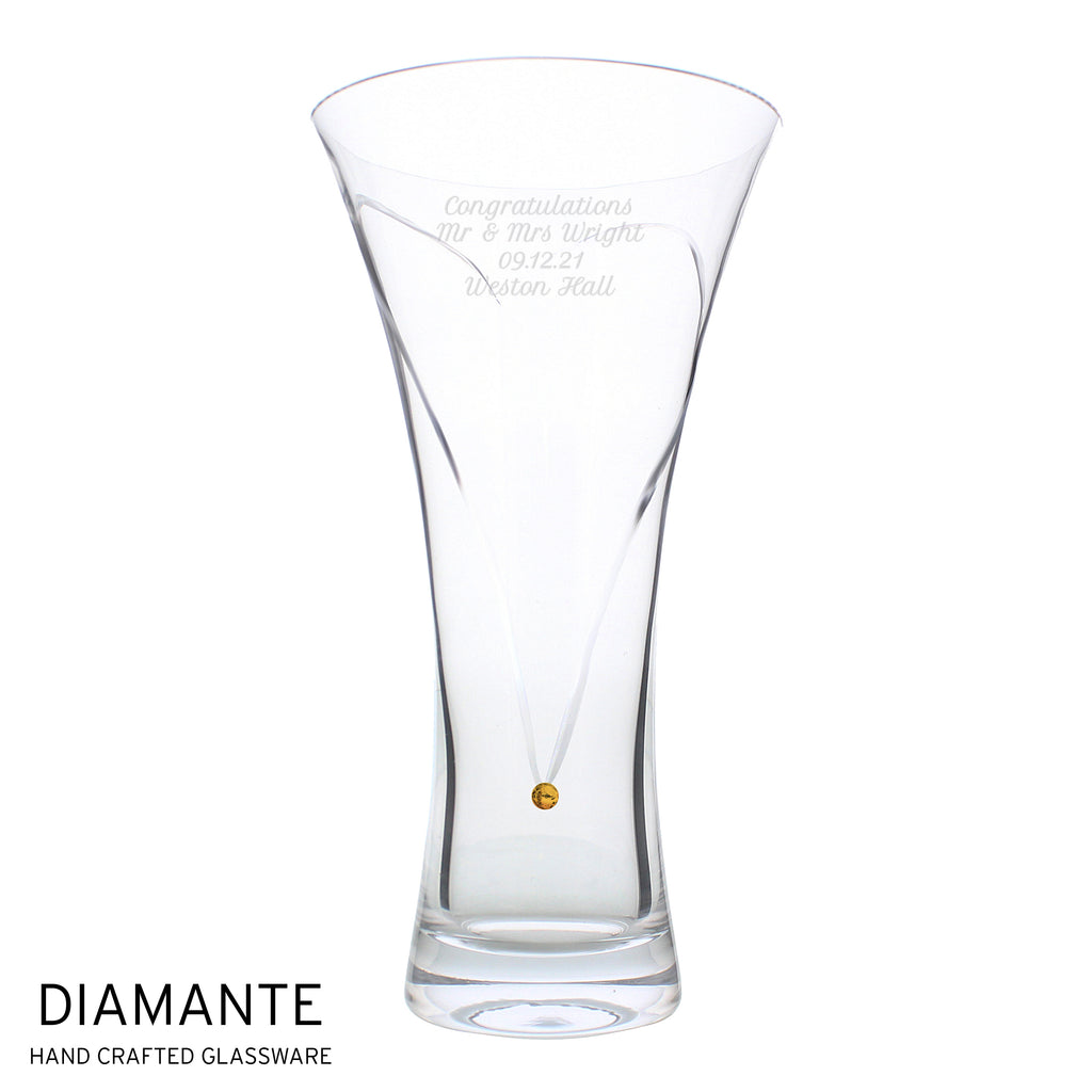 Personalised Large Hand Cut Gold Diamante Heart Vase