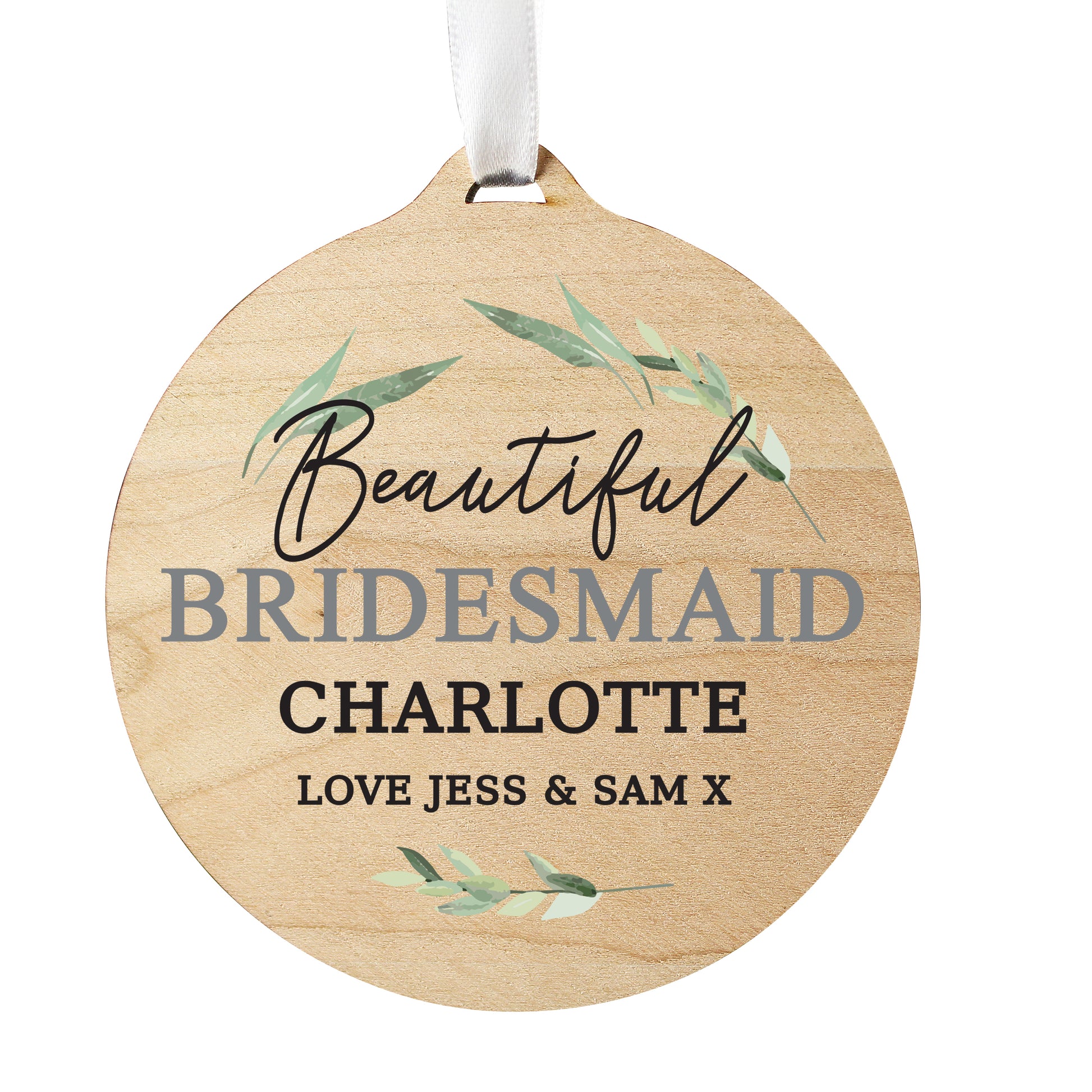 Personalised Leaf Decor Round Wooden Decoration