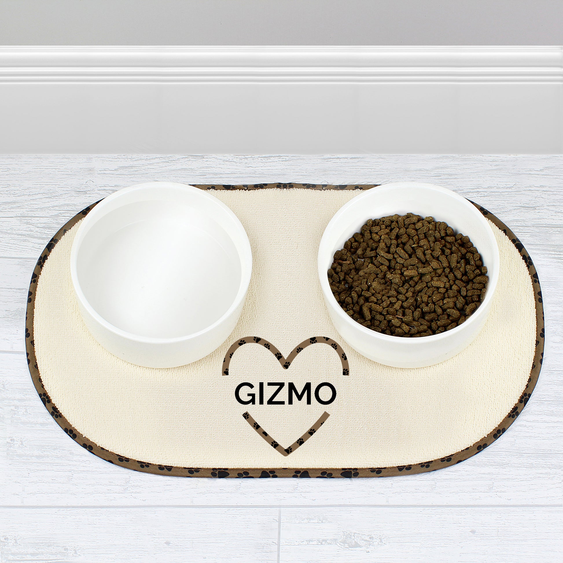 Personalised Love Heart Microfibre Pet Bowl Mat