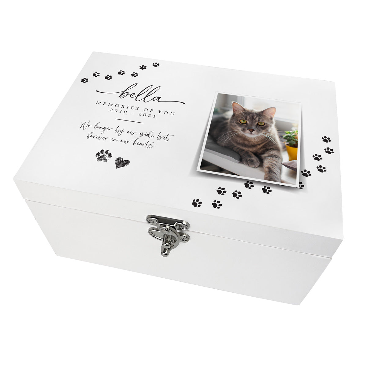 Personalised Paw Prints Pet Memorial White Wooden Photo Memory Box - 3 Sizes