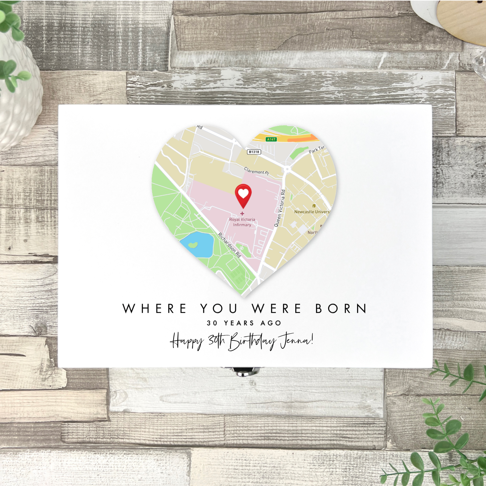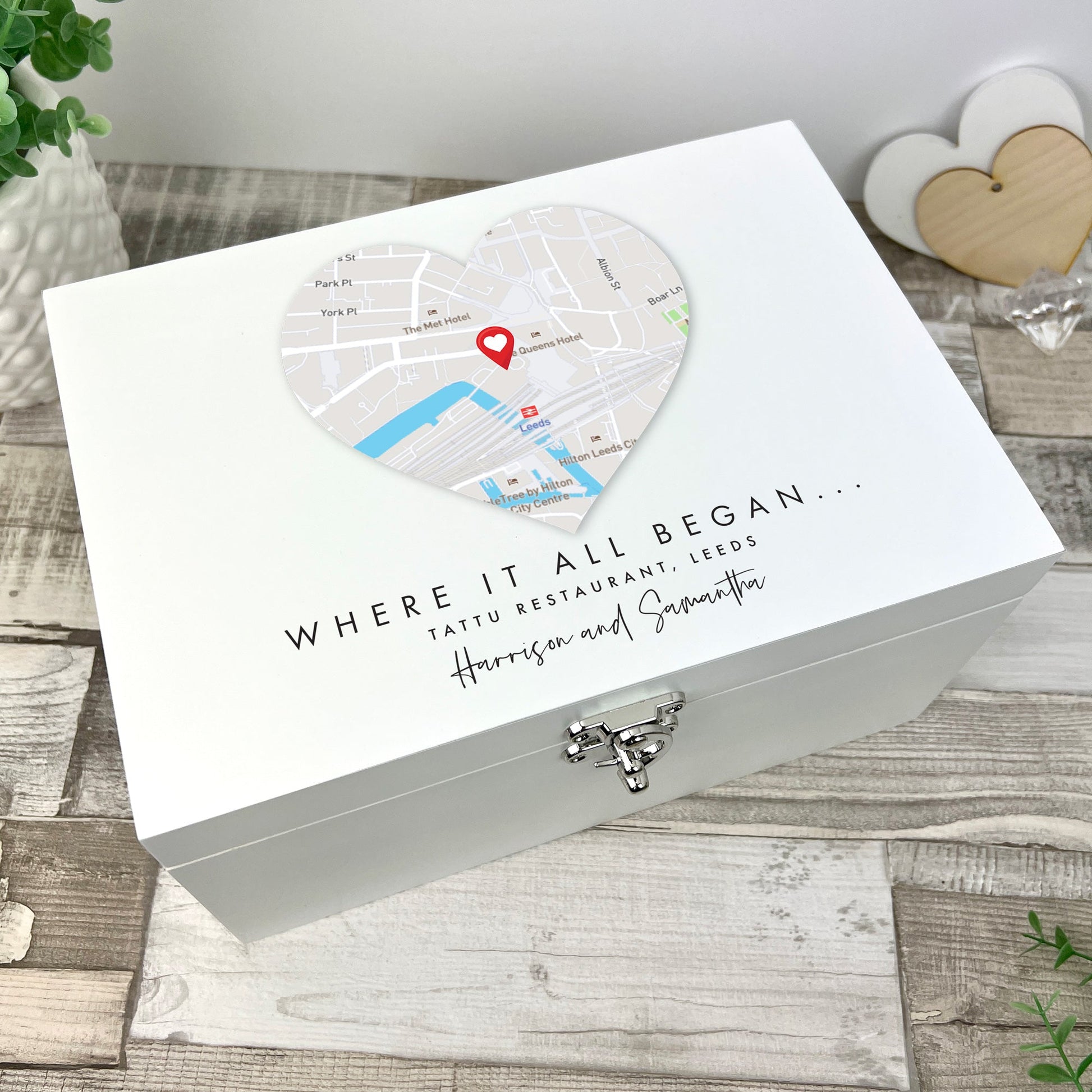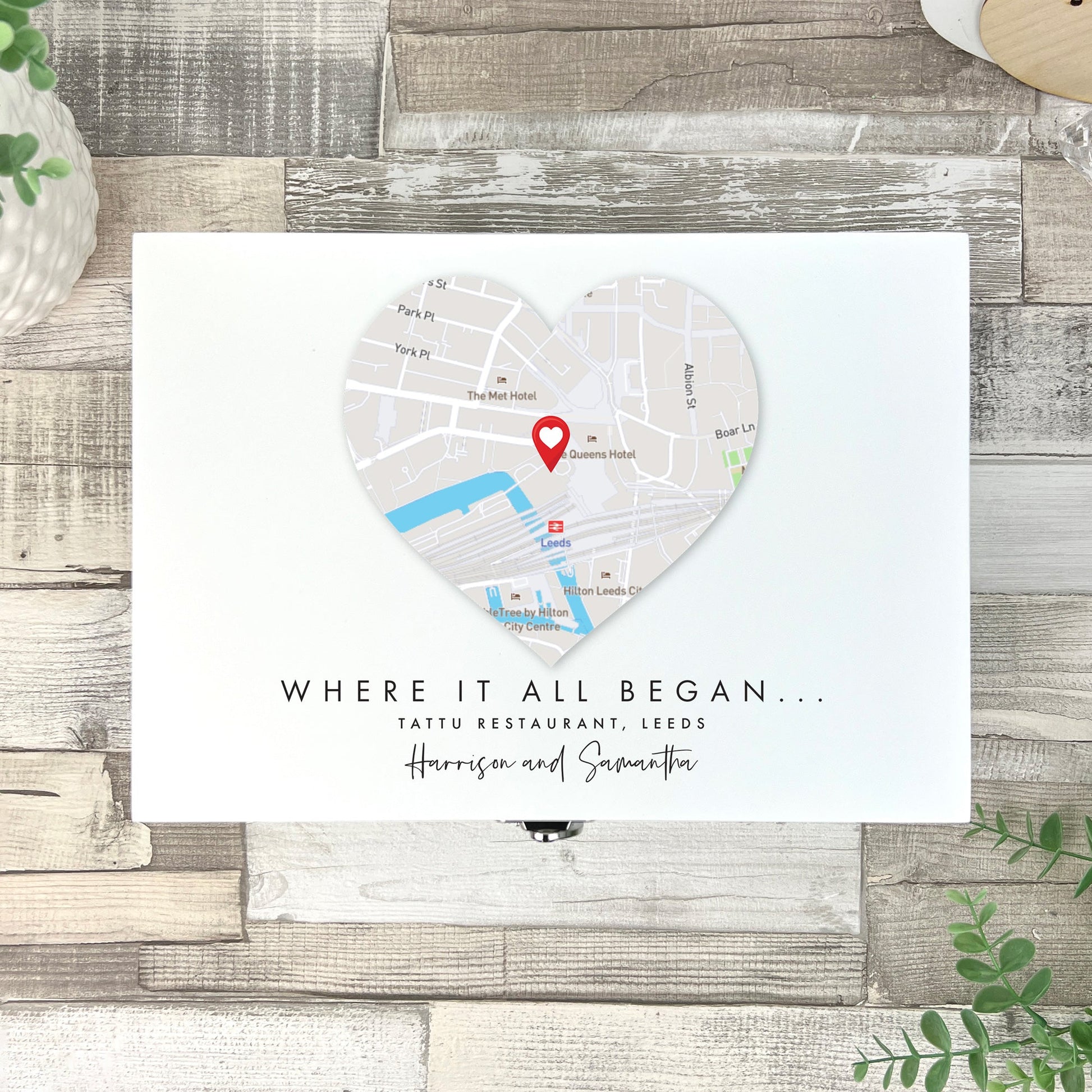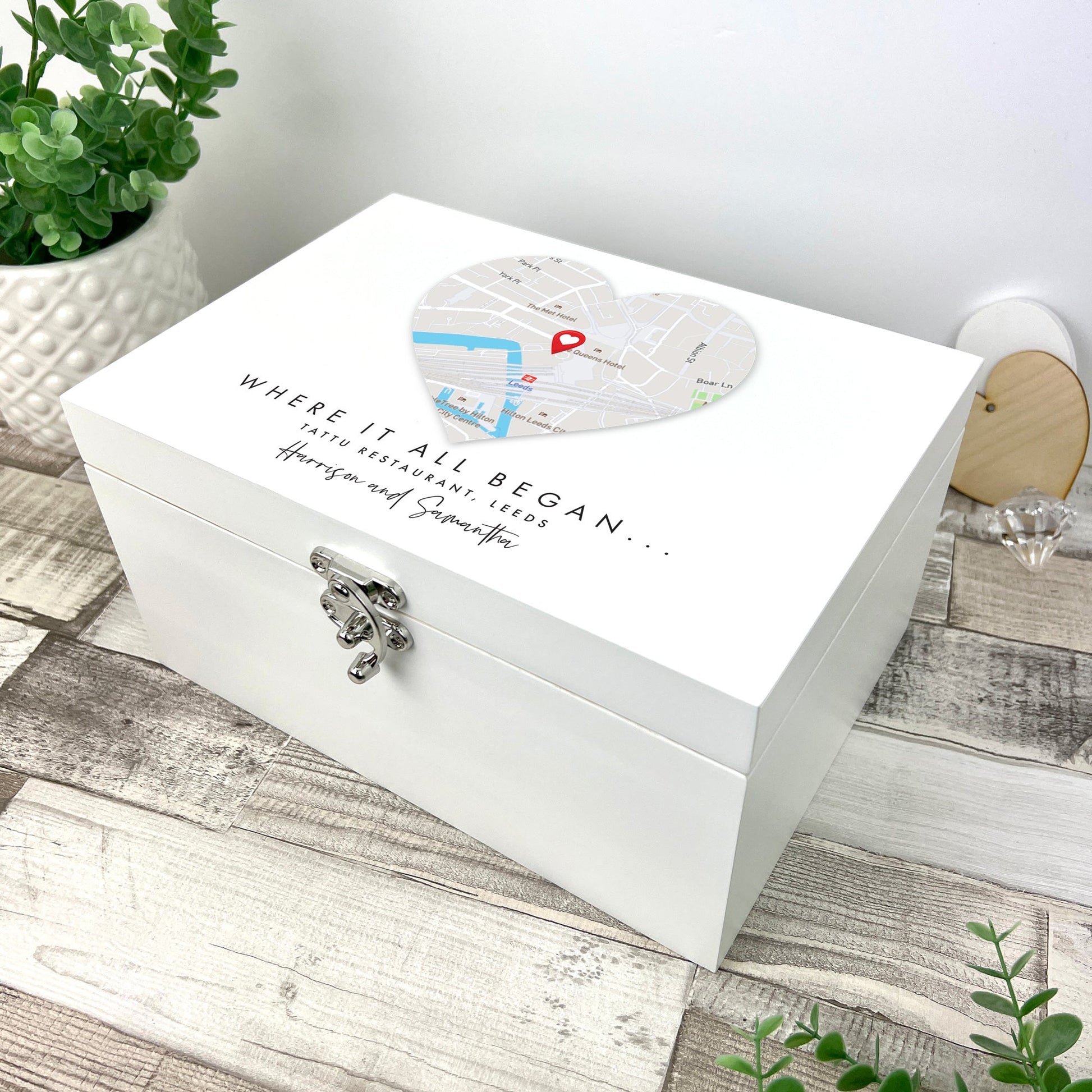 Personalised Heart Map Location White Keepsake Box - 3 Sizes