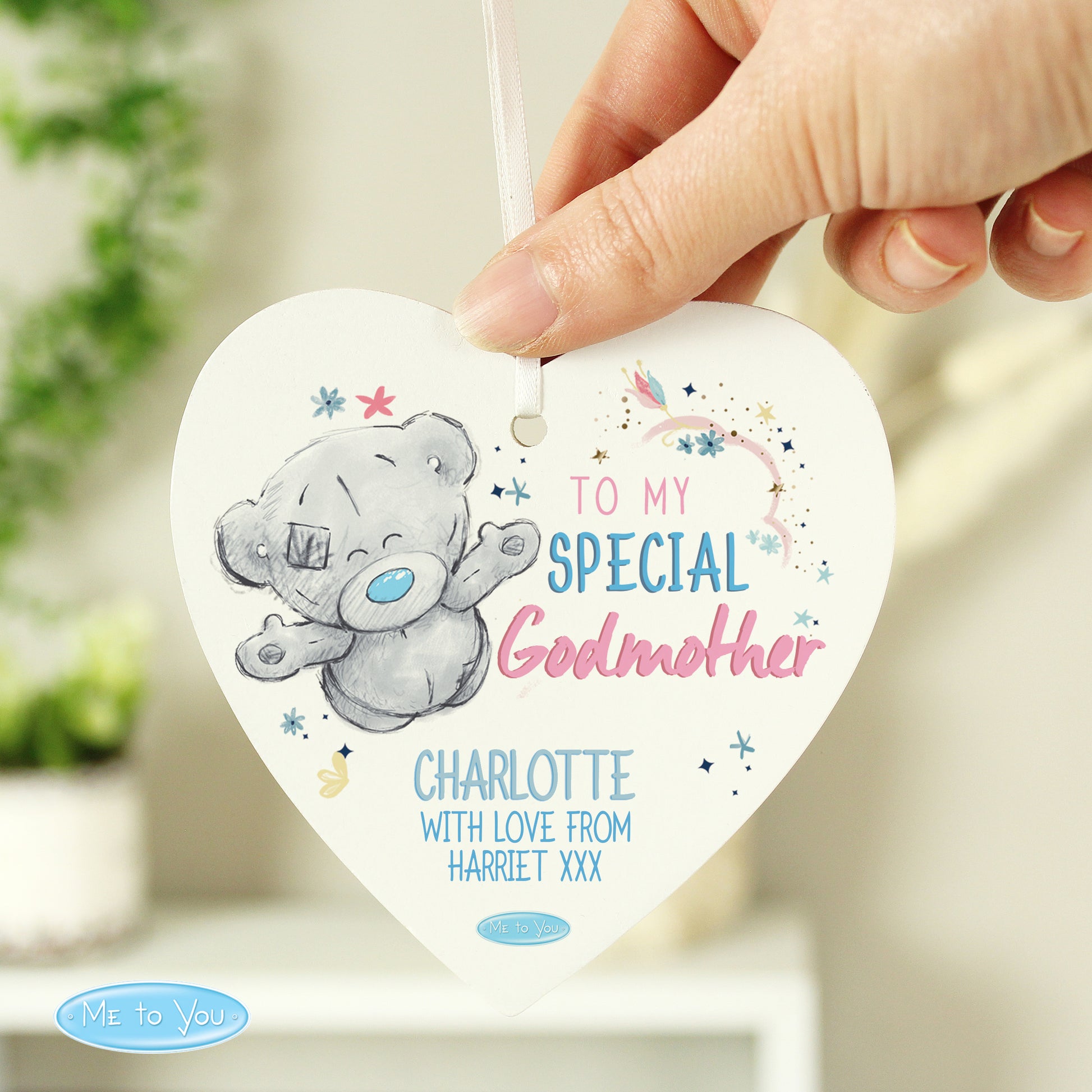 Personalised Me to You Godmother Wooden Heart Decoration