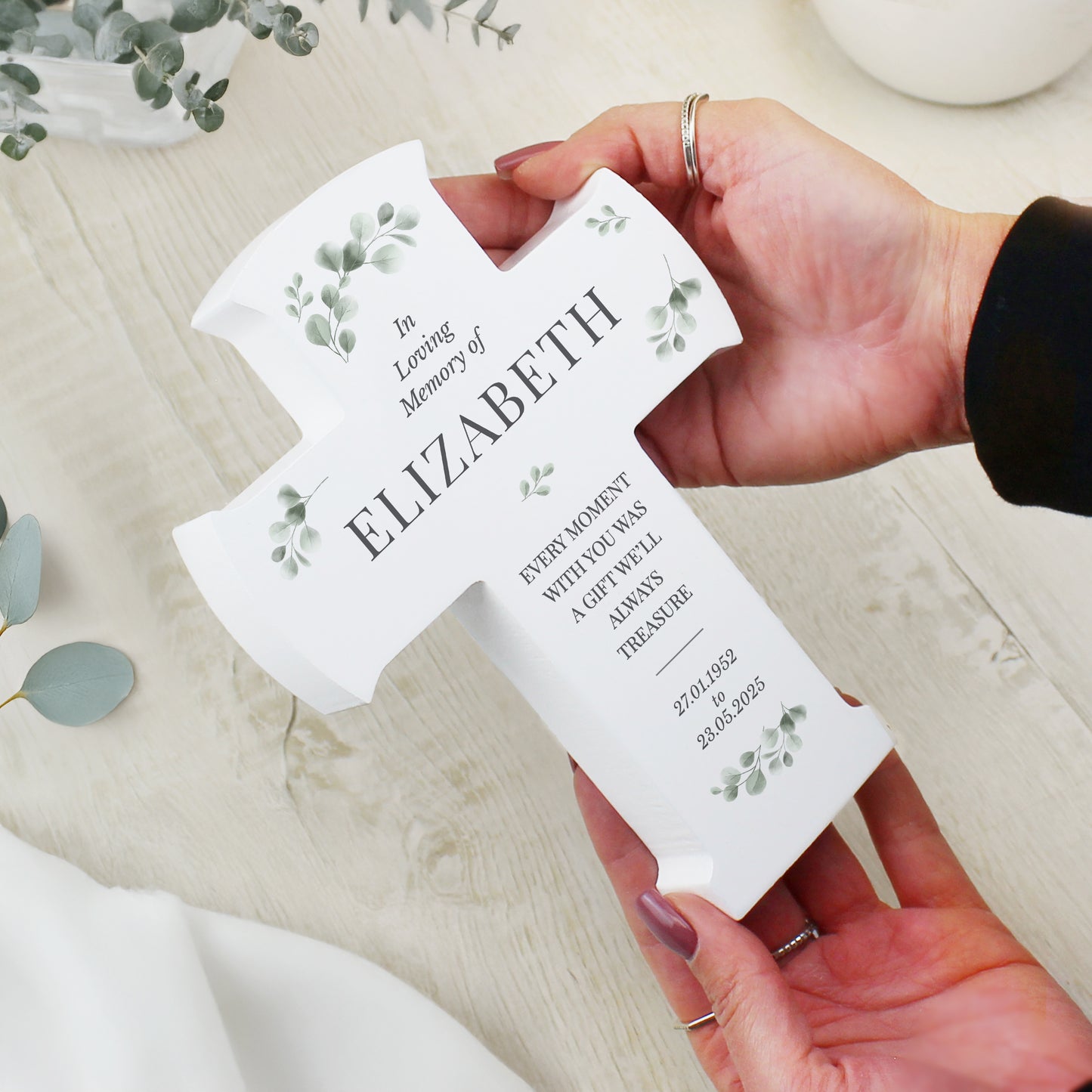 Crafted with care, this elegant cross ornament can be personalised with a message over 12 lines, making it a truly personal tribute.