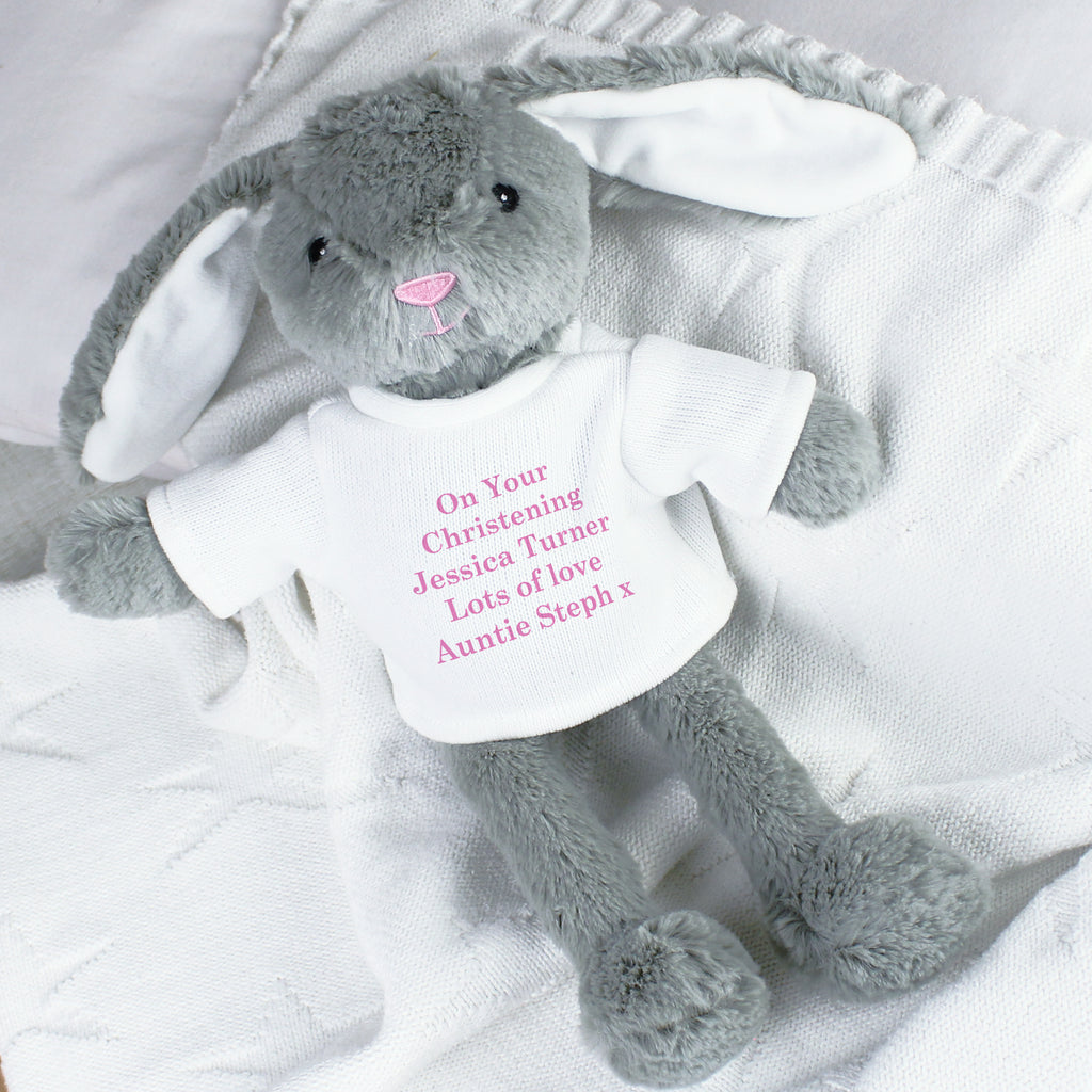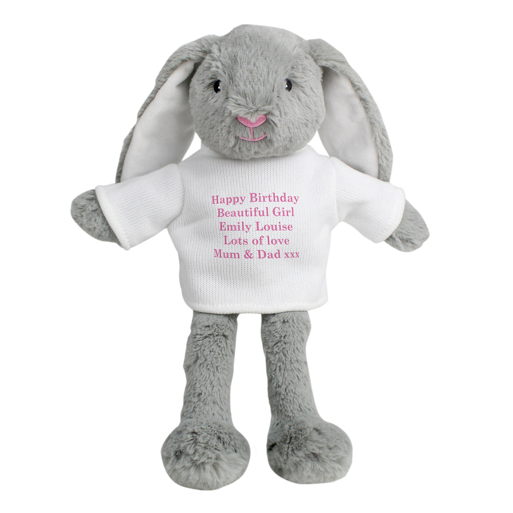 This charming personalised Pink Message Bunny is the perfect birthday or easter gift.