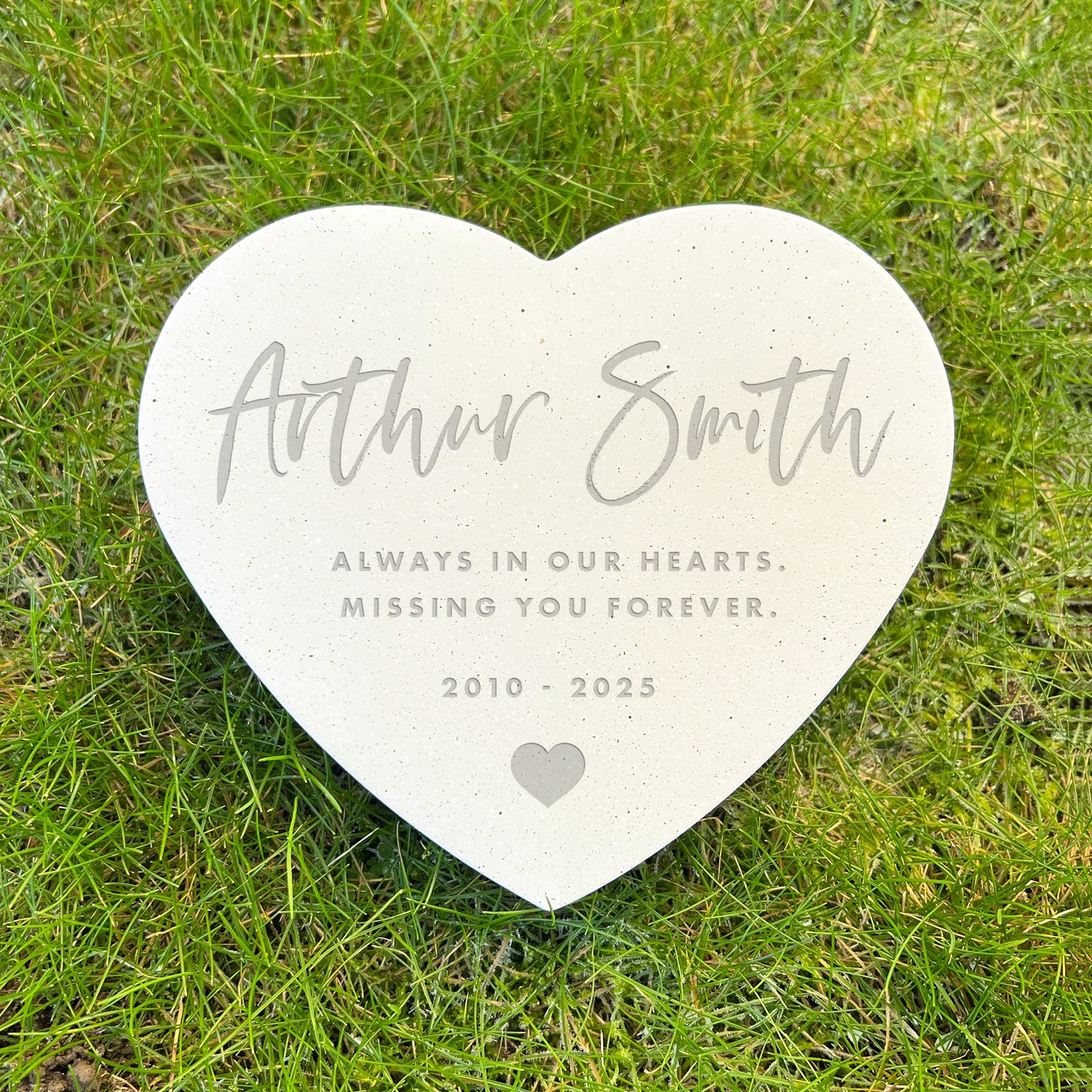 Personalised Modern Script Heart Engraved Resin Heart Grave Marker