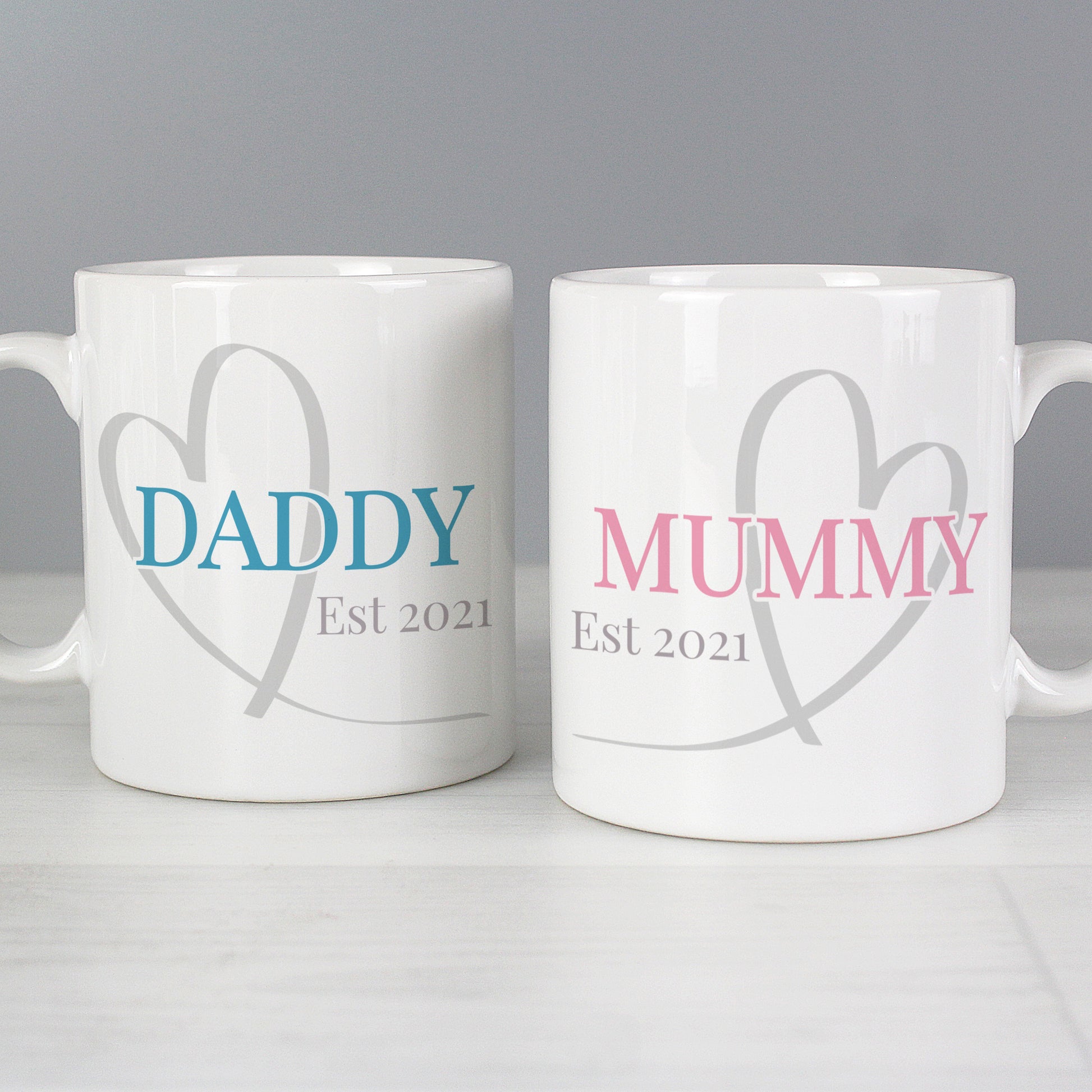 This mug set can be personalised with a date / year up to 12 characters (please include Est if required) on the front of the mug.