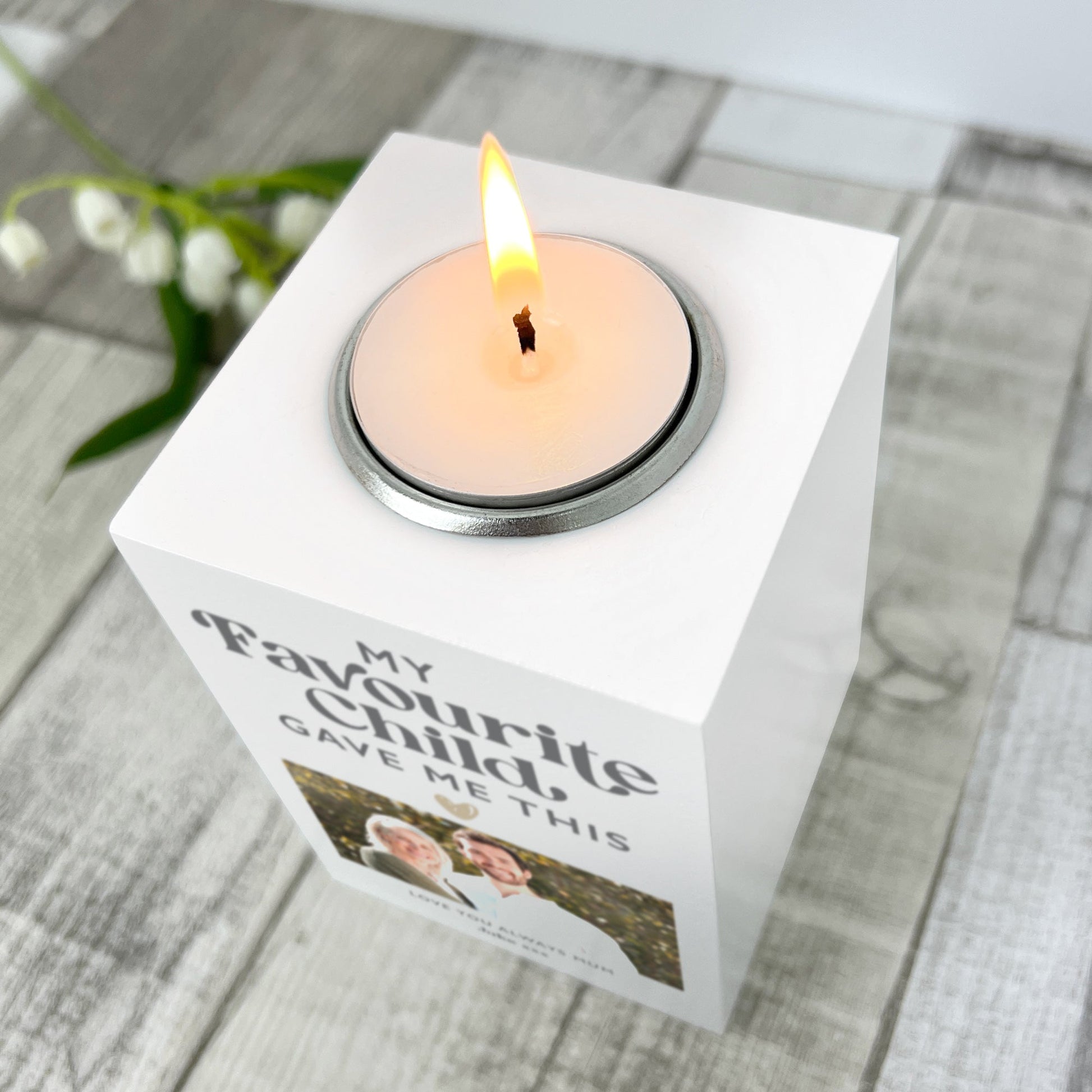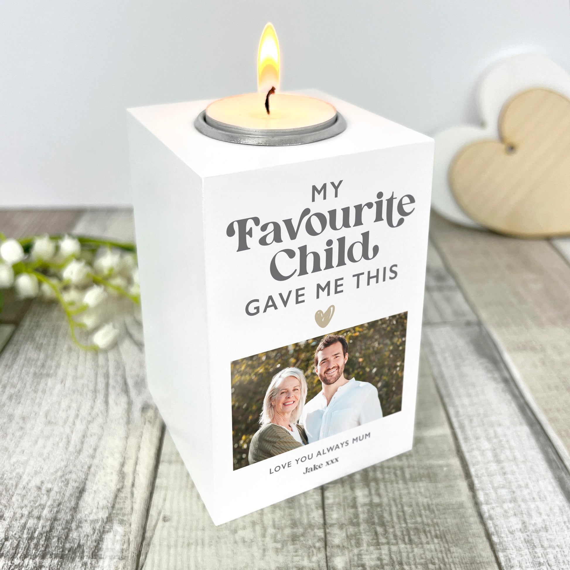 Personalised My Favourite Child Gave Me This White Tea Light Holder