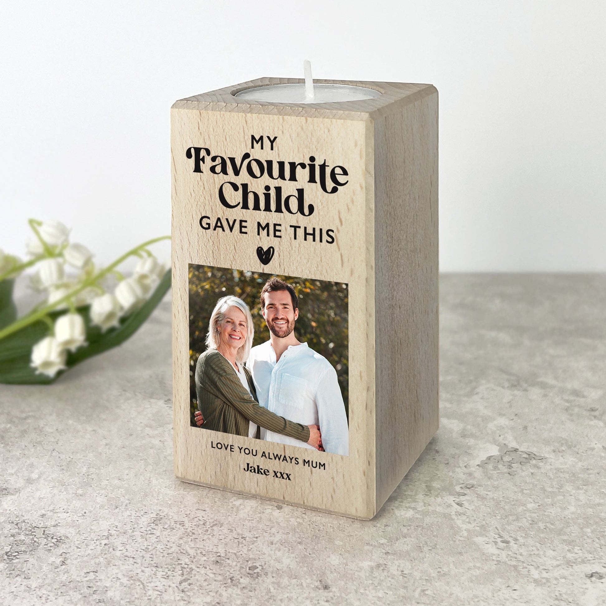 Personalised My Favourite Child Gave Me This Wooden Tea Light Holder - 2 Sizes