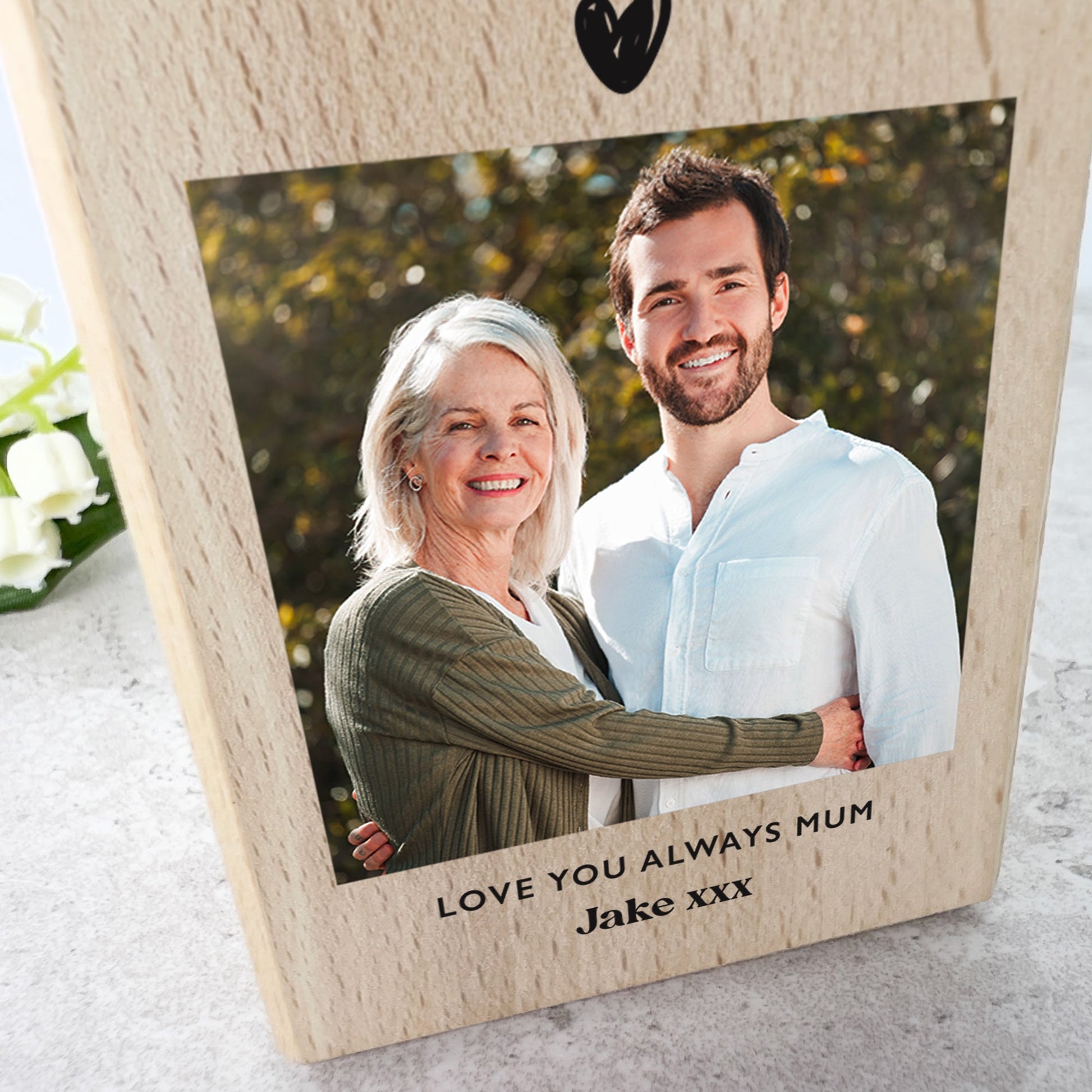 Delight your parents with a special gift - a personalised wooden tea light holder! Add your favourite photo of the two of you and a message to make it extra special.