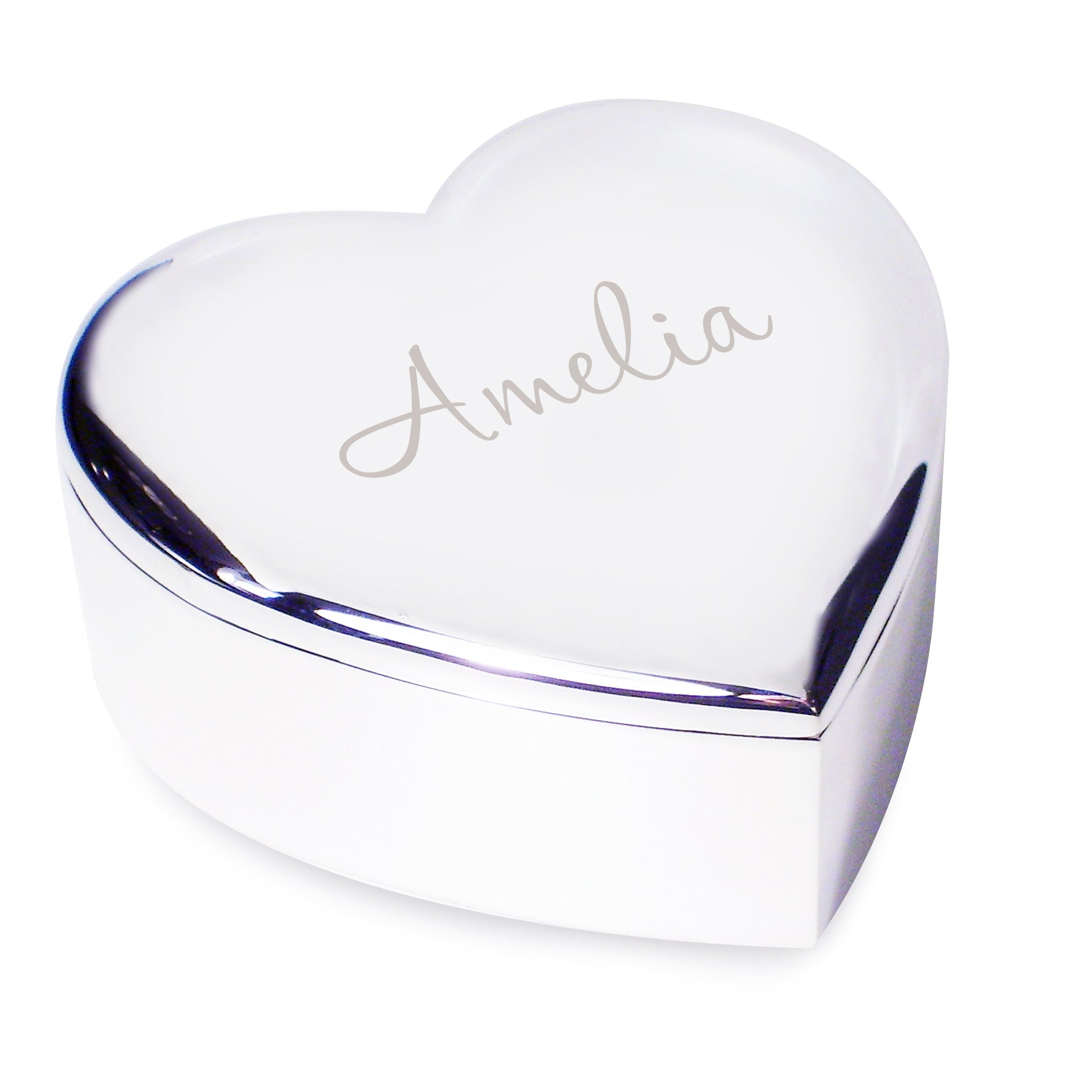Personalise this charming silver heart trinket box with a name up to 12 characters.