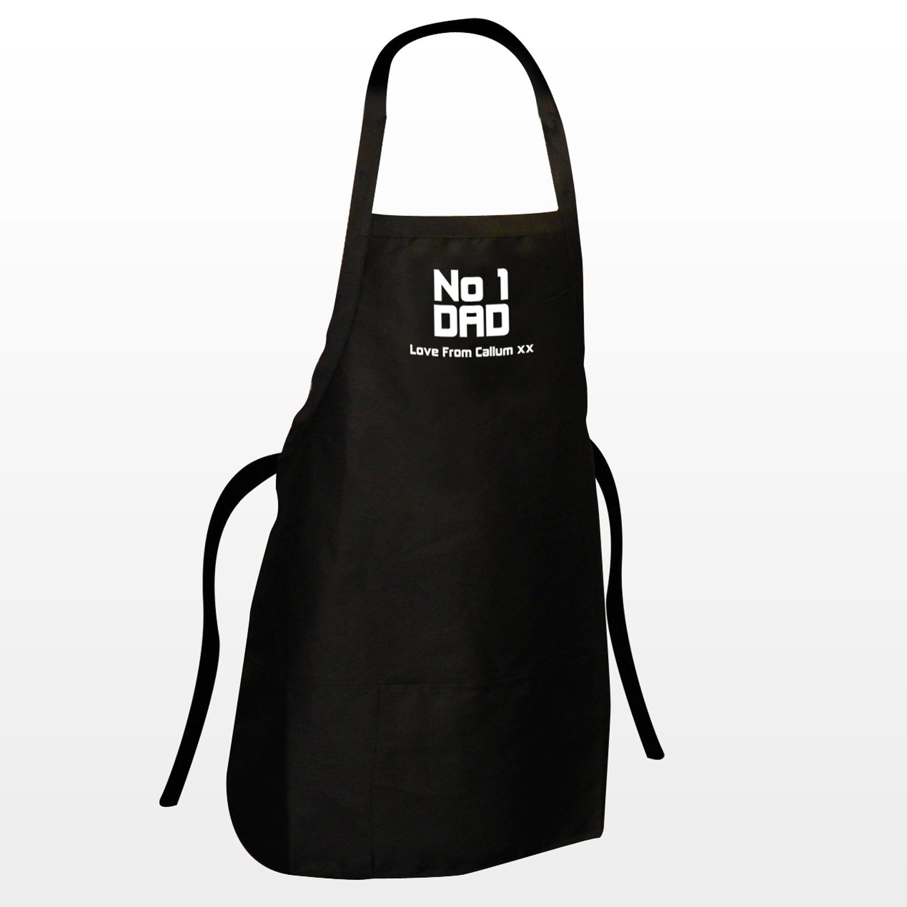 Personalise the apron with any message up to 20 characters. The wording 'No1 Dad' is standard text.