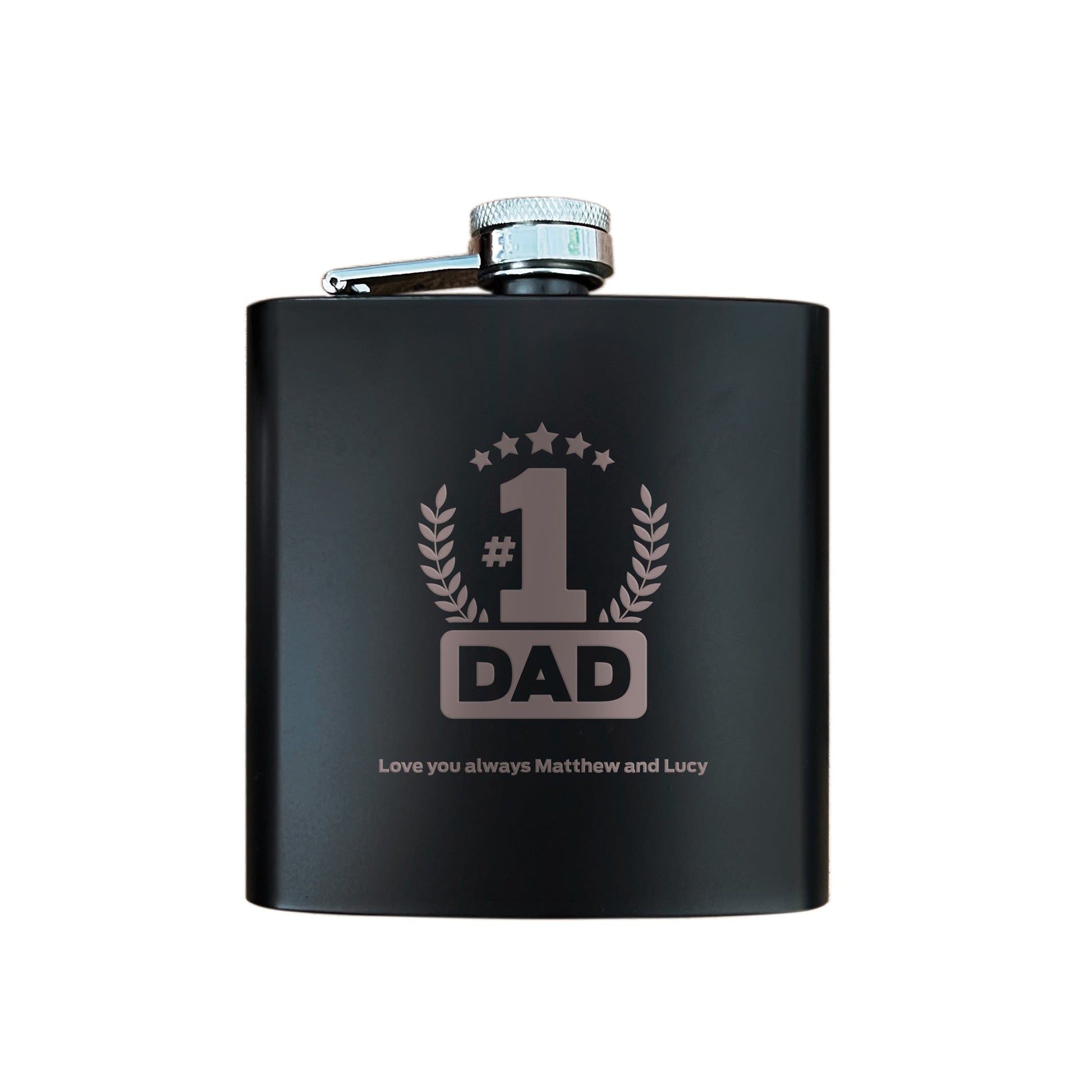 Personalised No.1 Dad Engraved Black Metal Hip Flask 6oz