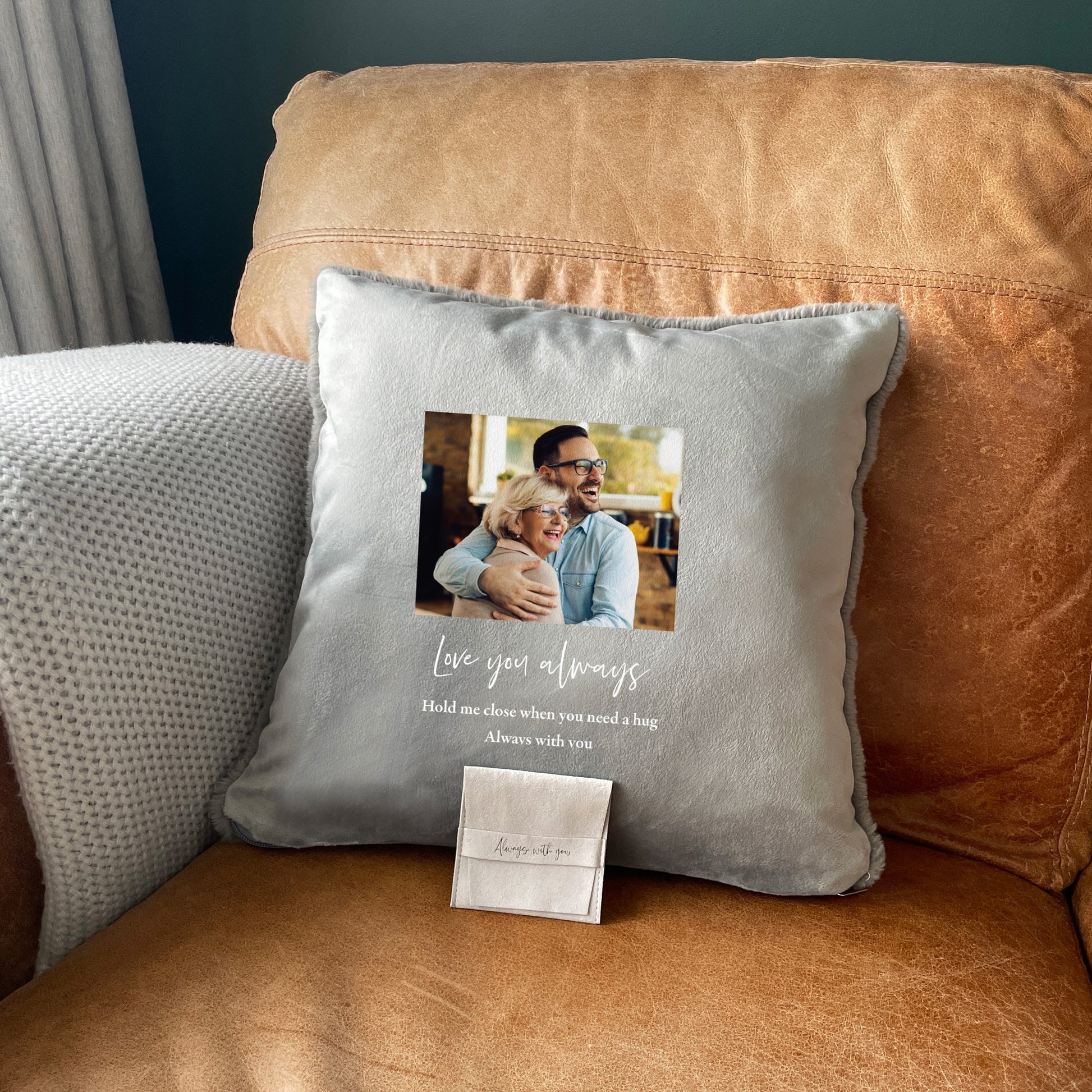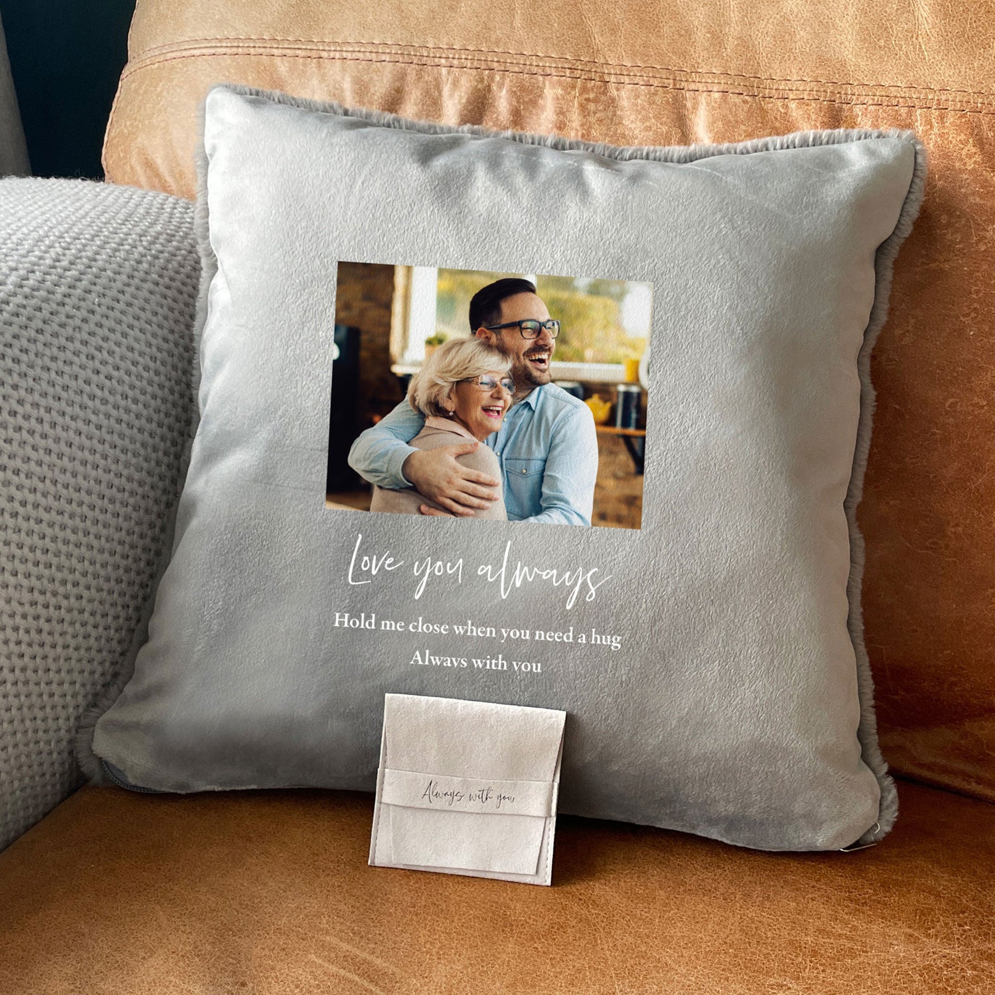 Find comfort and remembrance with our personalised memorial cuddle cushion. Cherish memories with a photo and a heartfelt message on one side, while the other side is soft and cuddly.