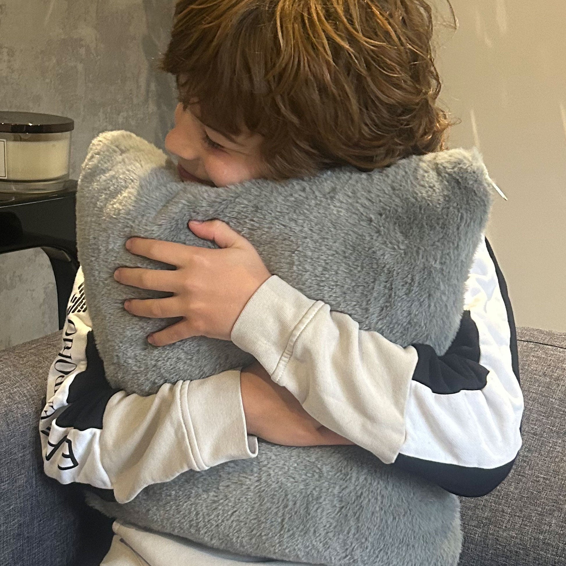 This Personalised One Photo Pet Memorial Ashes Cuddle Cushion is a lovely way to stay connected to your cherished pet, even when they are no longer with you. You can have a treasured photo and a heartfelt message printed on one side, while the other side is soft and cuddly, this cushion is perfect for cuddling whenever you miss your furry friend. The sketched paw and heart design above the photo is always included.
