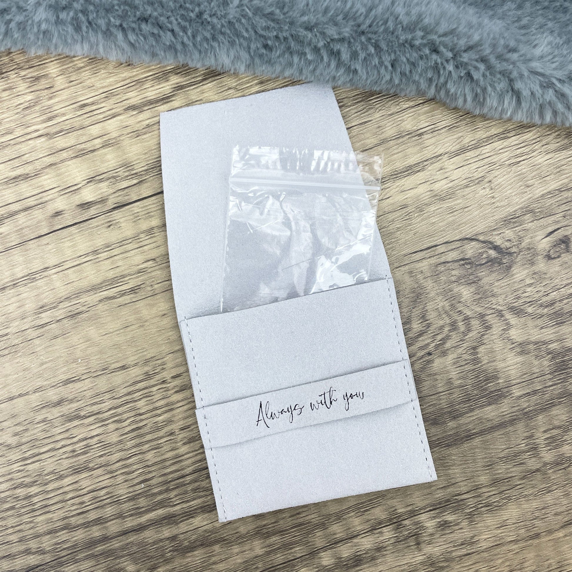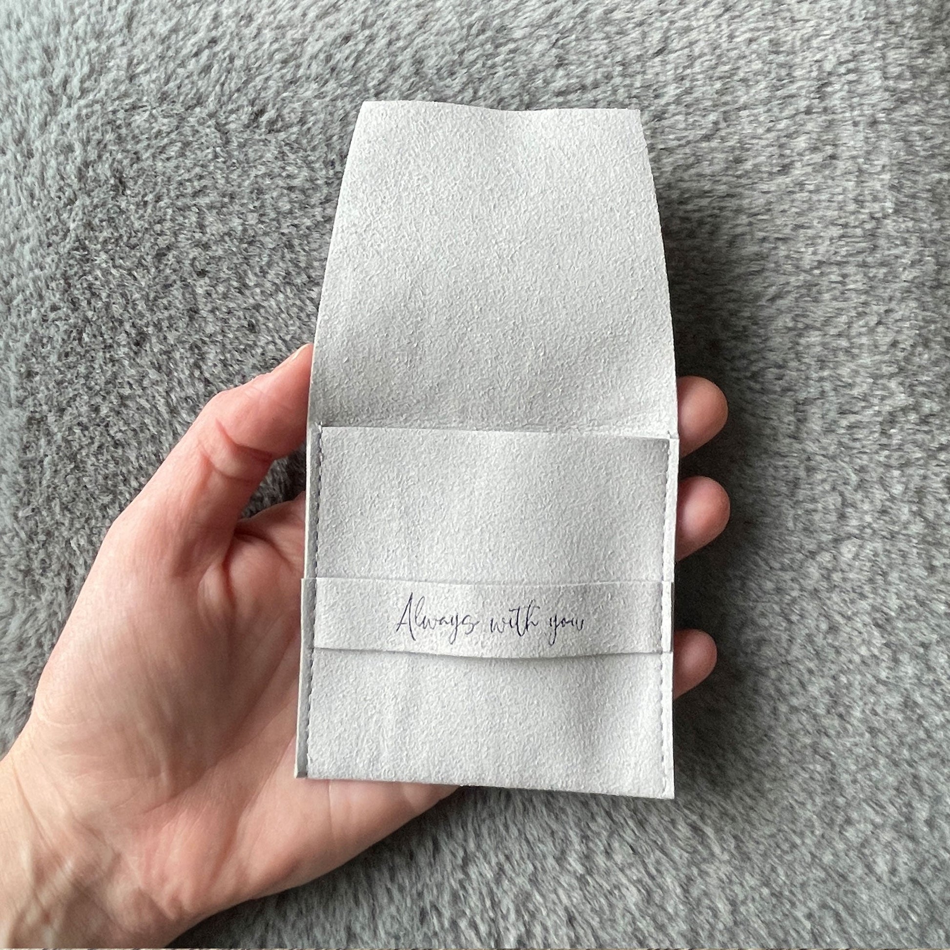Inside the cushion, there is a light grey suede bag that can hold a small amount of cremation ashes inside a sealed plastic bag. *Please do not overfill the plastic bag to prevent it from opening.*