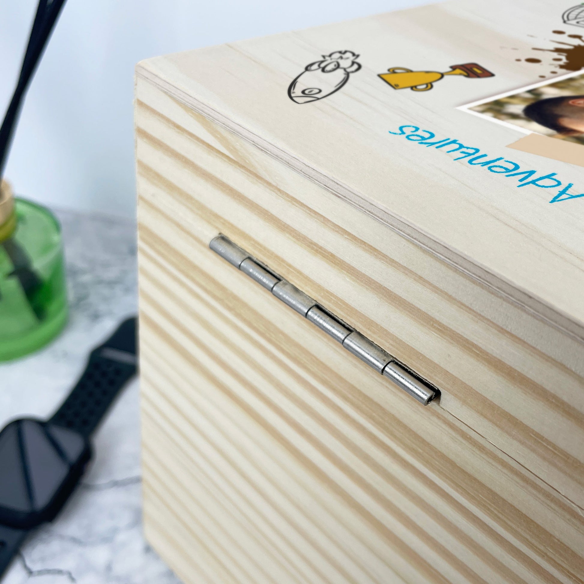 Personalised 'Our Adventures' Kids Doodles Pine Memory Box - 5 Sizes