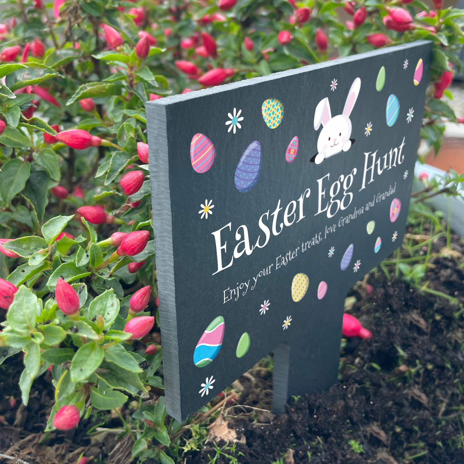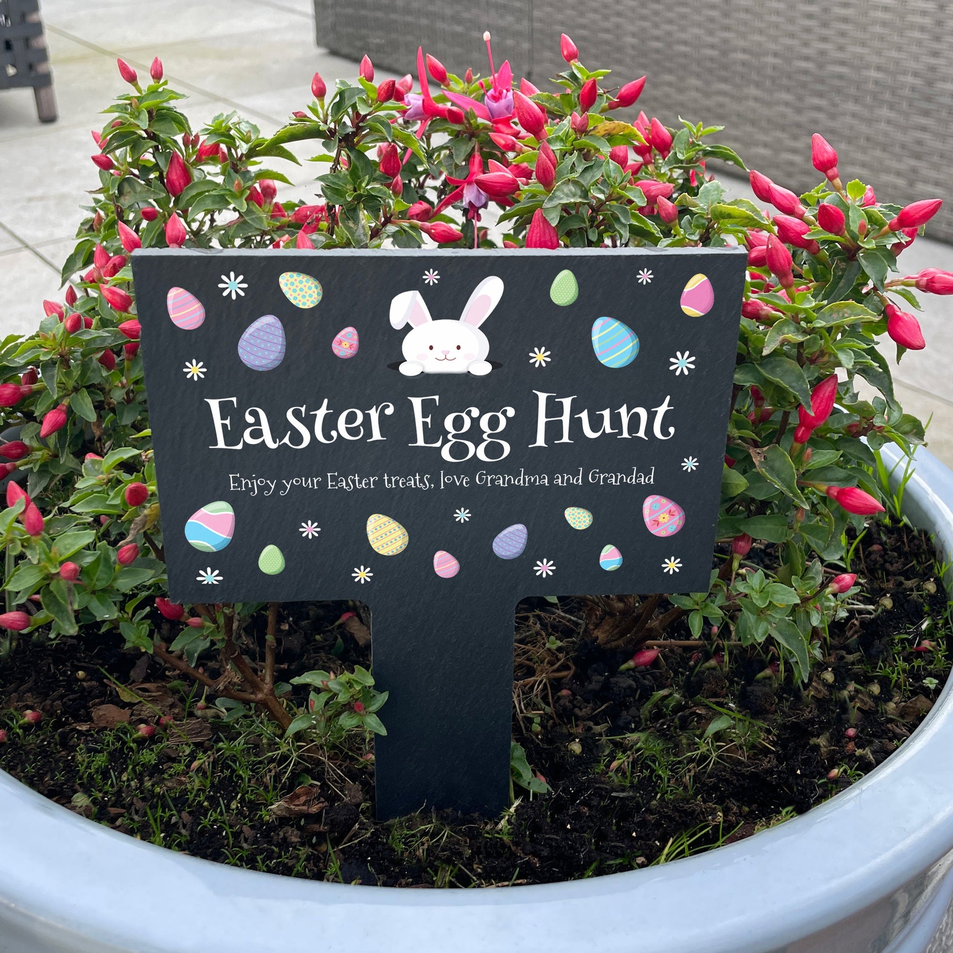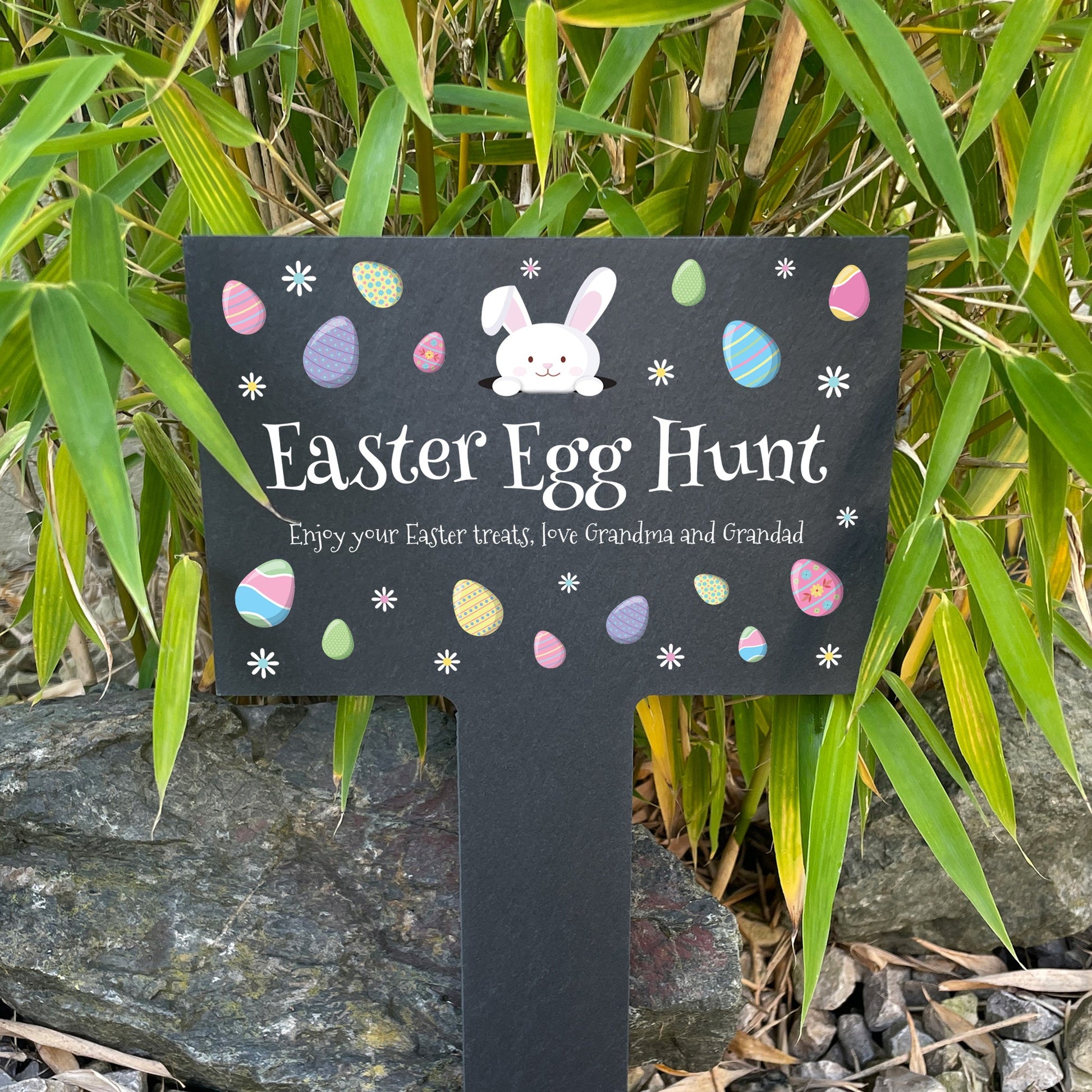 Brighten up your garden this Easter with a lovely surprise for your children. This personalised Easter sign, made from strong slate, features a colourful pastel Easter egg design that they will enjoy seeing on Easter morning.
