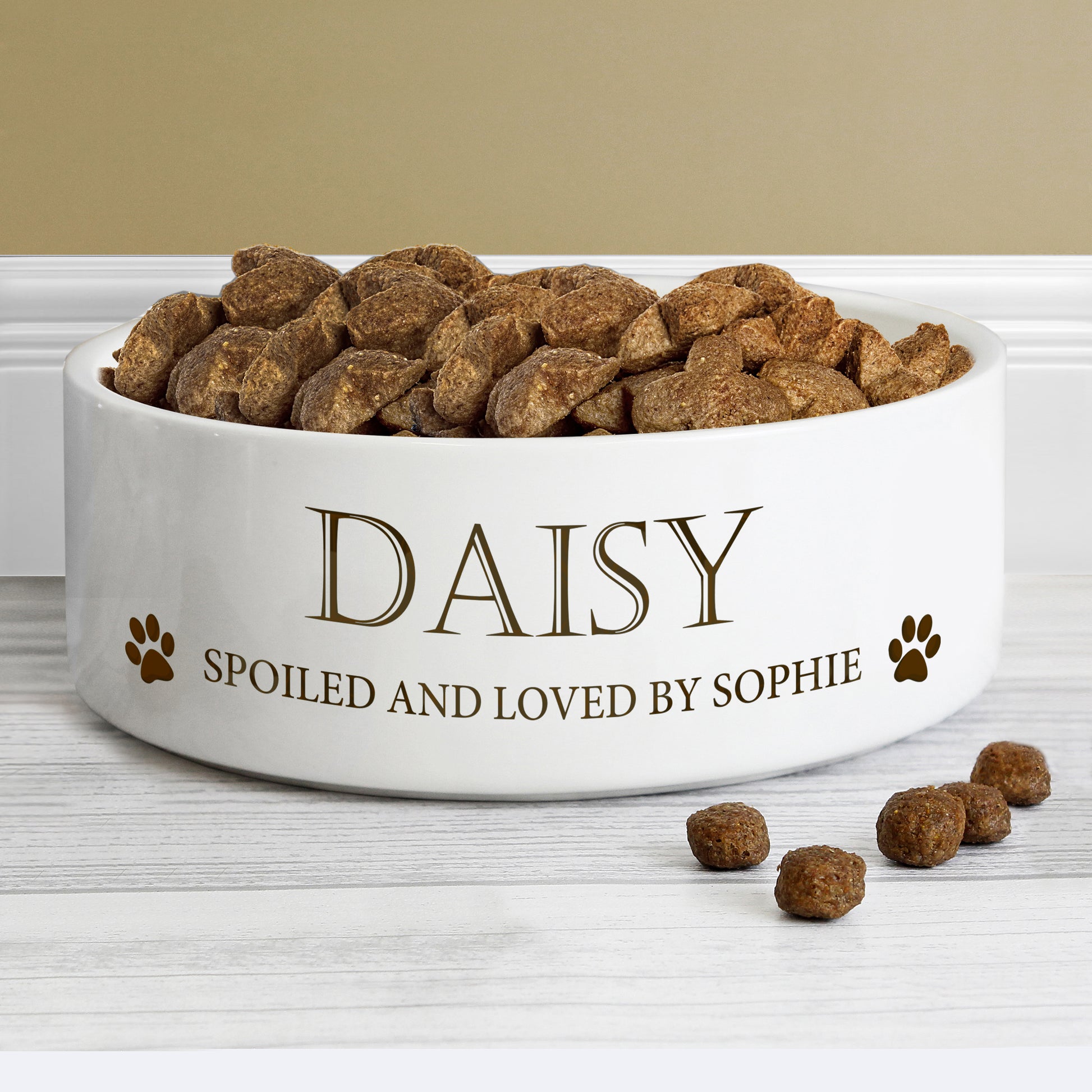 Our Paws 15cm Medium White Pet Bowl can be personalised with a name up to 12 characters and a line of text up to 30 characters in length.