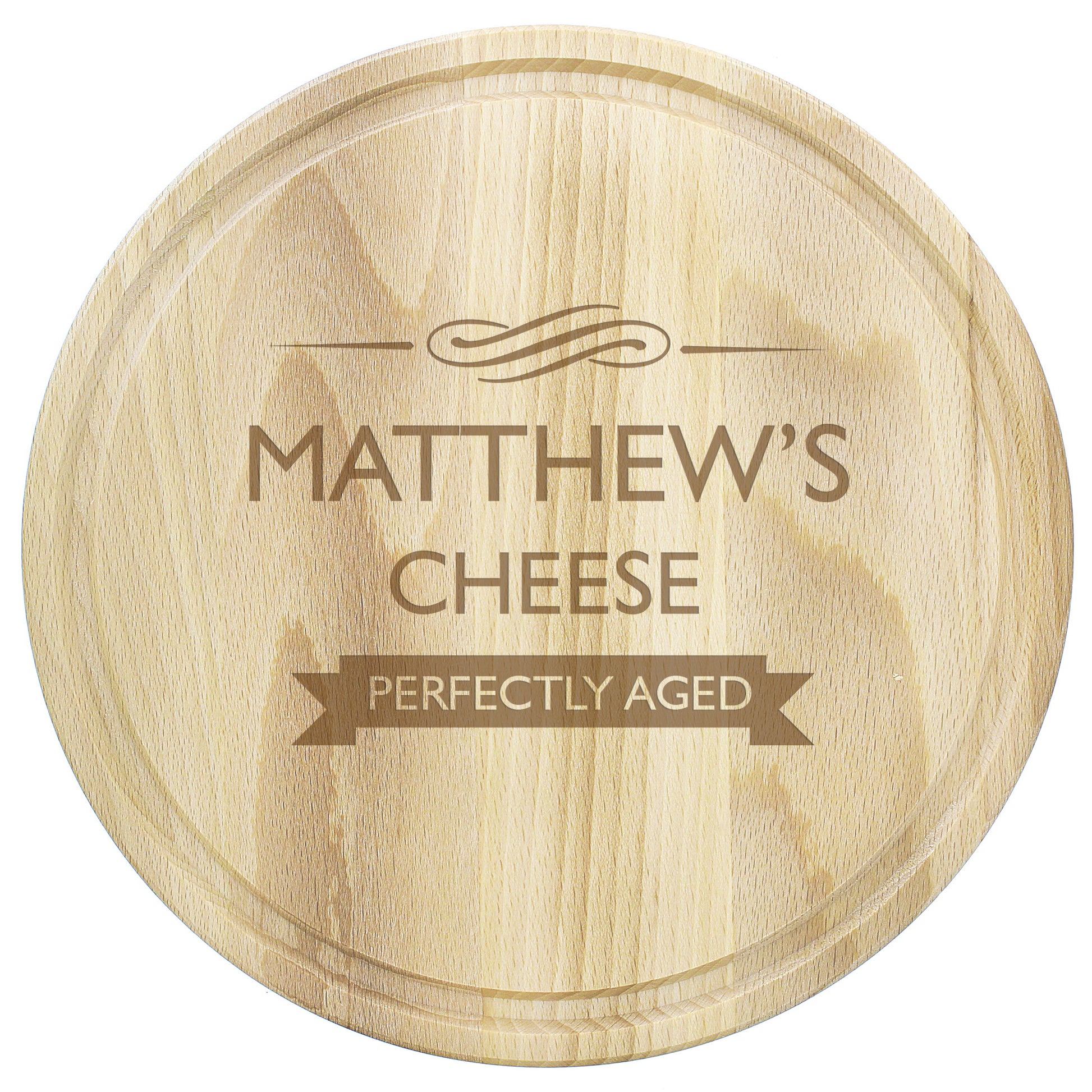 Personalise this Perfectly Aged Round Chopping Board with 2 lines of text of up to 15 characters.