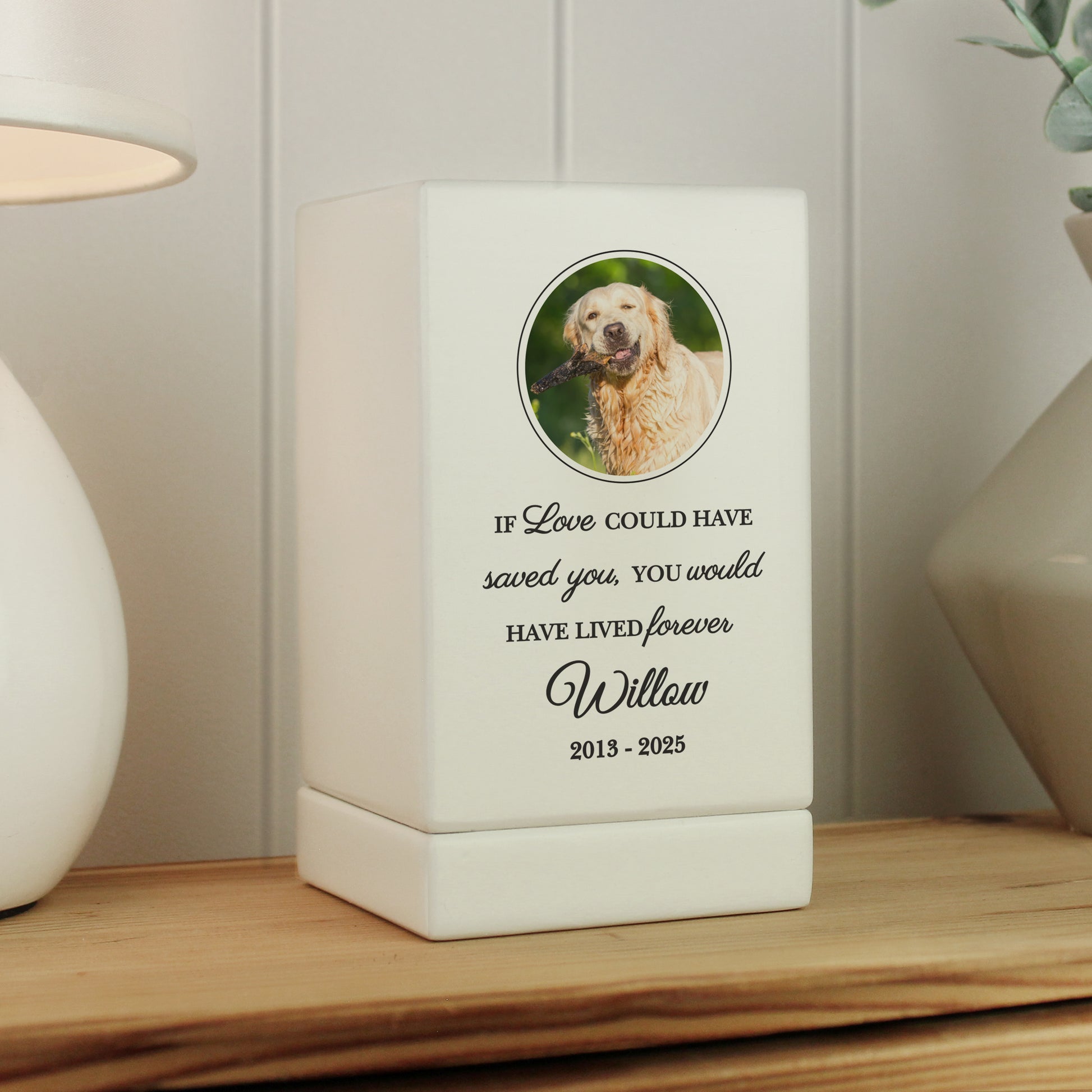 Crafted from high-quality wood, this beautiful urn features a photo of your pet along with a personal message, making it a truly unique and heartfelt tribute.