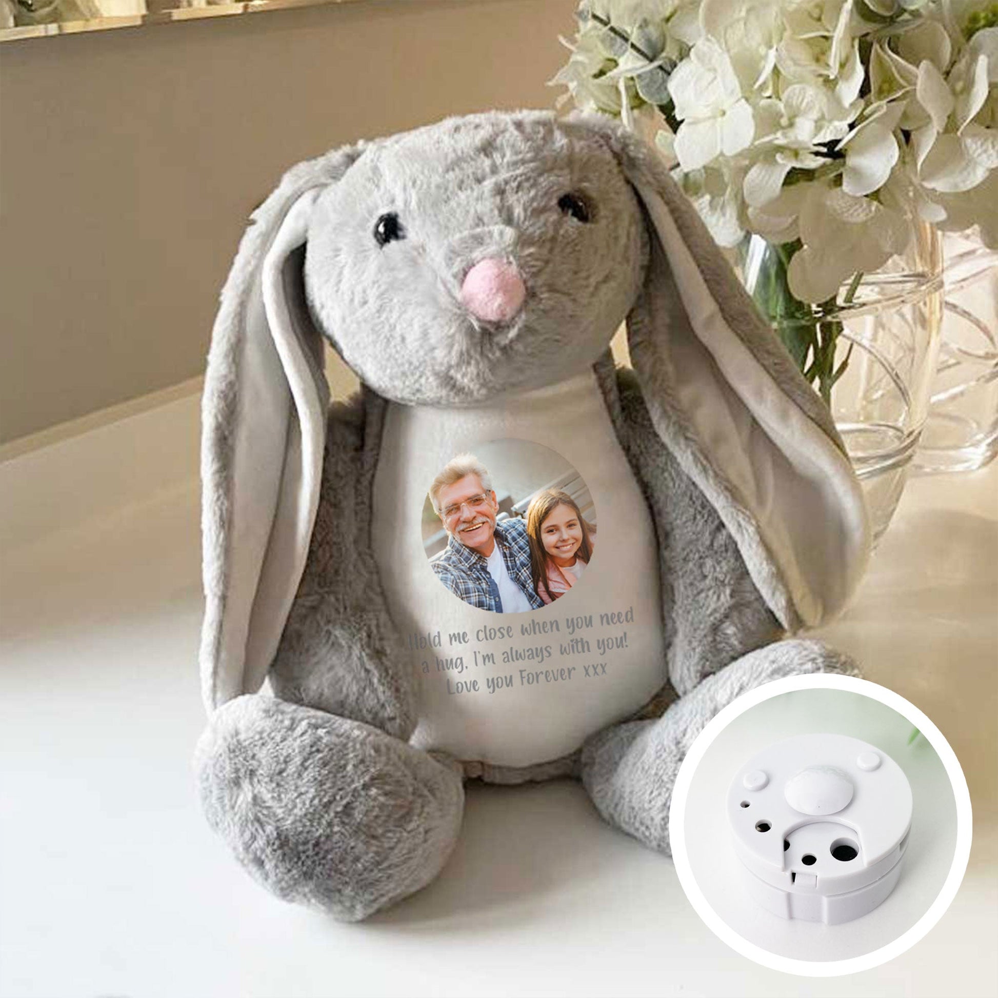 Personalised Photo Record-A-Voice Keepsake Memory Bunny - Grey