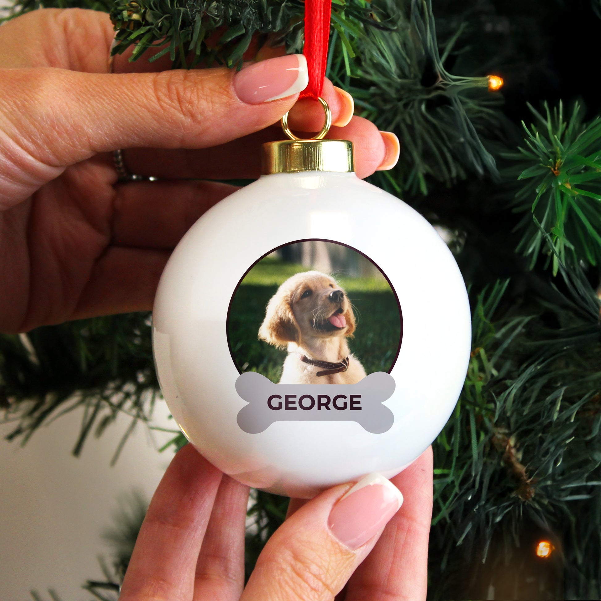 Simply choose your favourite photo of your pet to adorn the front and add their name along with a message on the reverse of the bauble, over 4 lines of 20 characters per line.