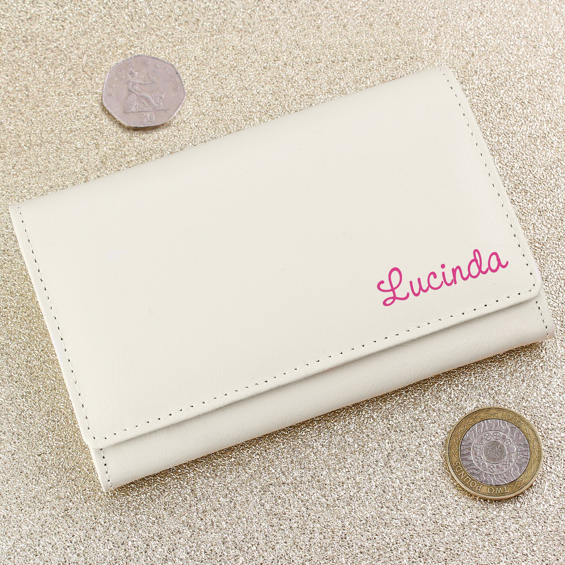 Personalised Pink Name Cream Leather Purse