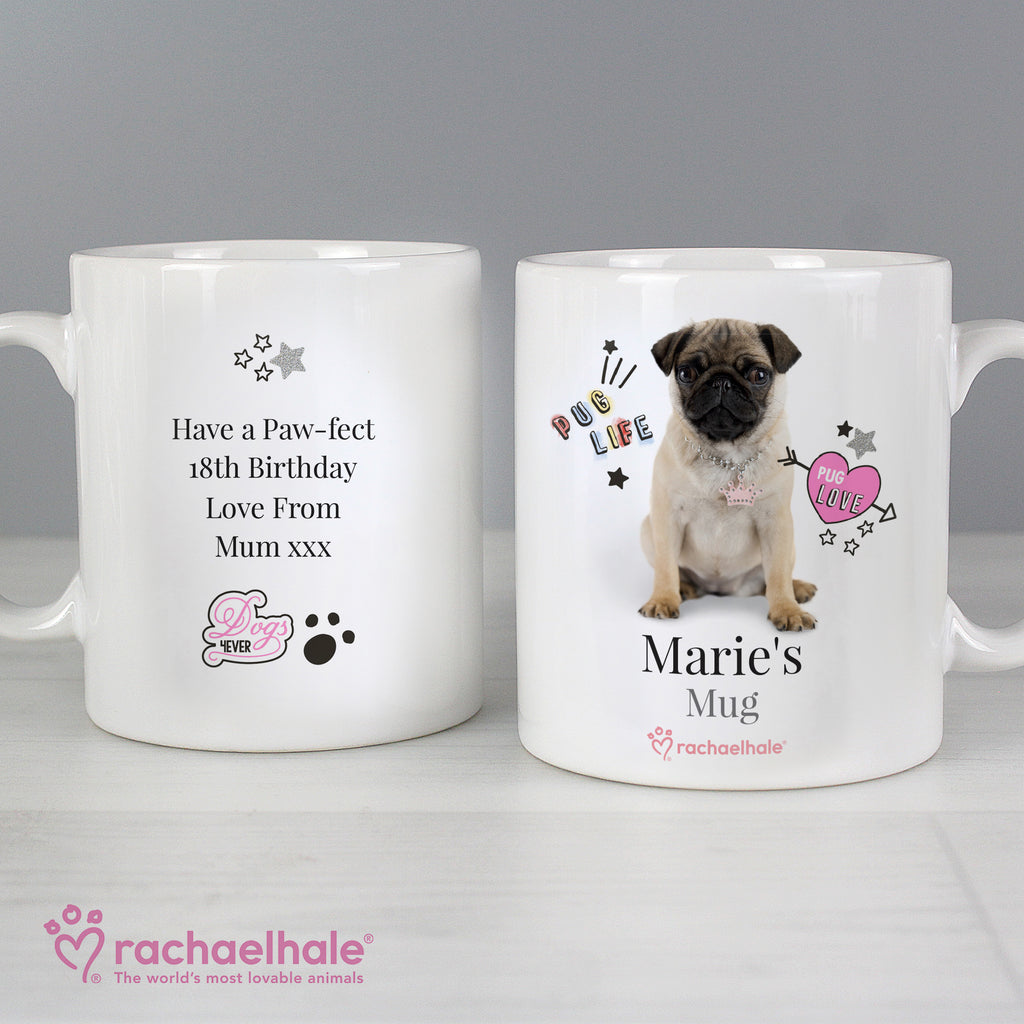 Share your love of pugs with this stylish Personalised Rachael Hale Doodle Pug Mug!