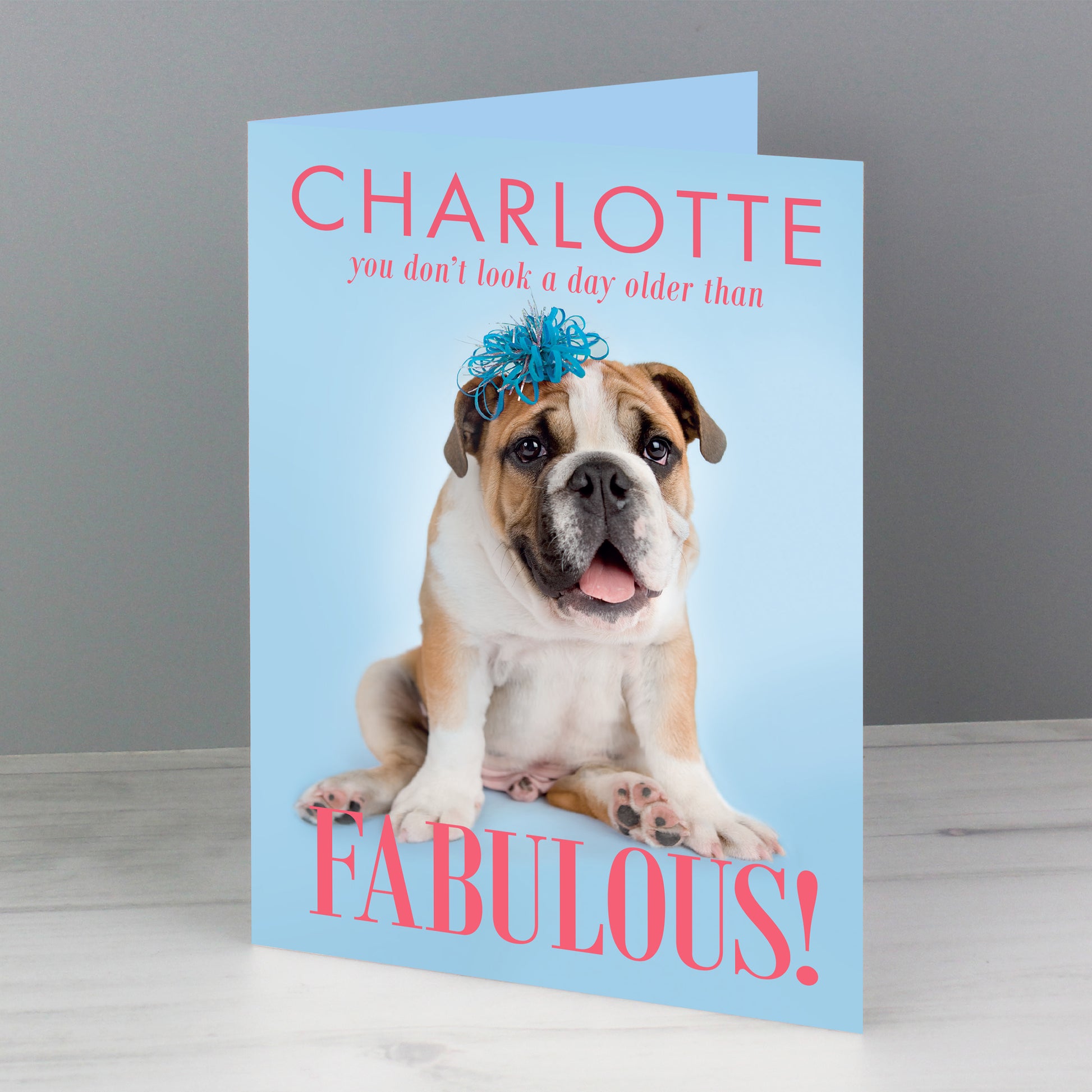 The words 'You don't look a day older than fabulous' are fixed and cannot be amended.