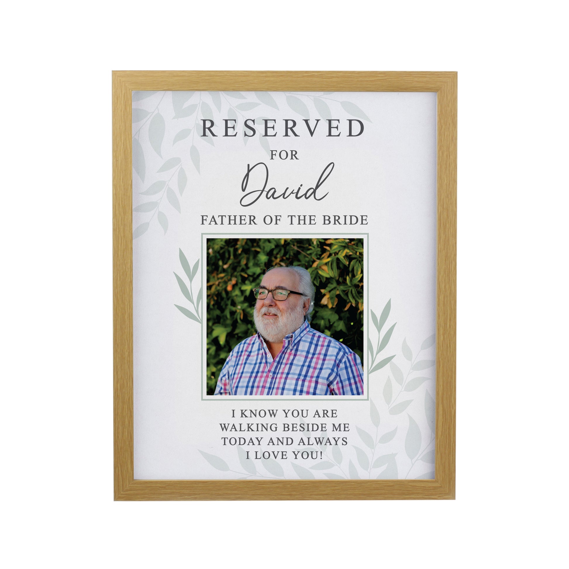 This personalised memorial photo frame is a touching way to honour and include a beloved family member who is unable to be present for the special occasion.