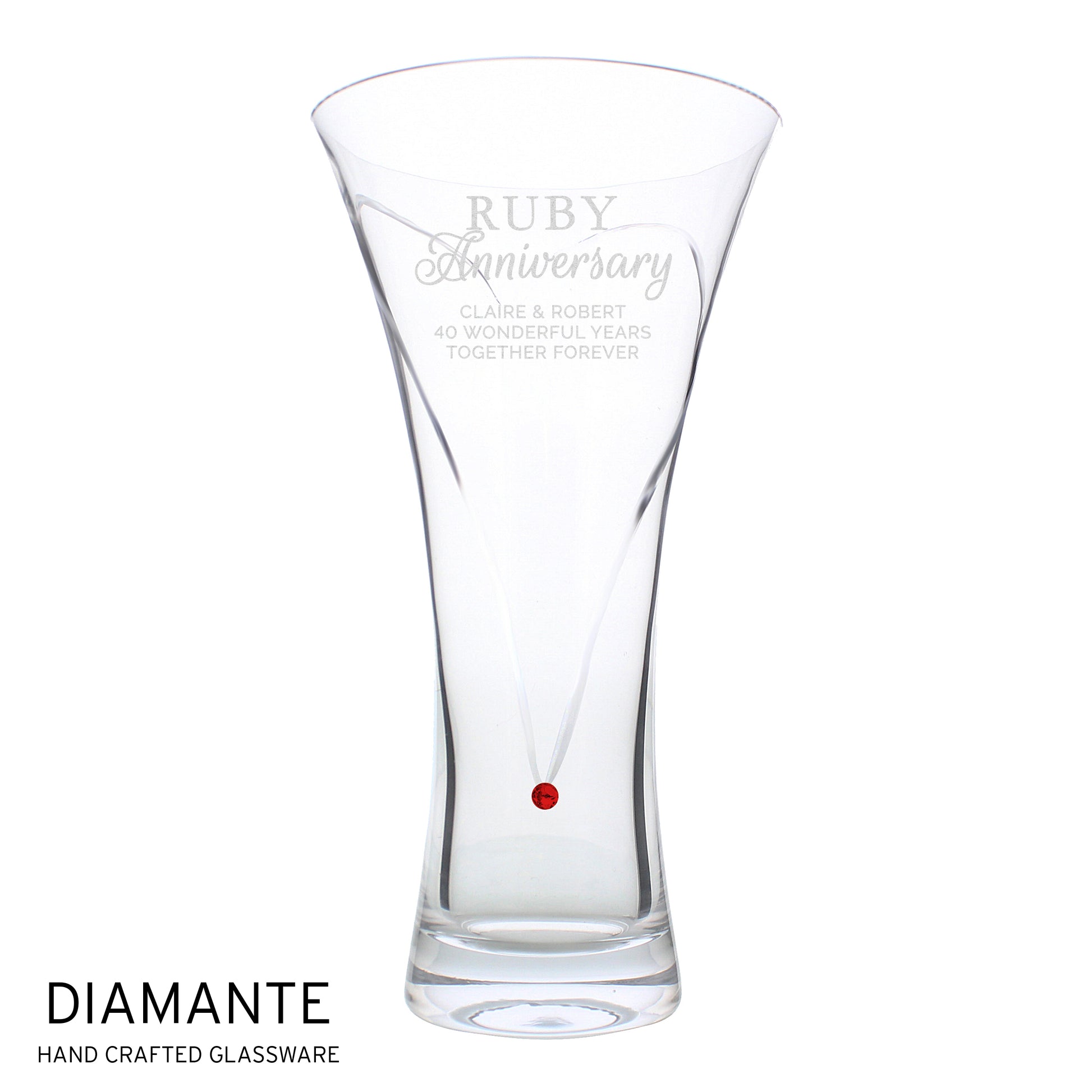 Personalised Ruby Anniversary Hand Cut Diamante Heart Vase