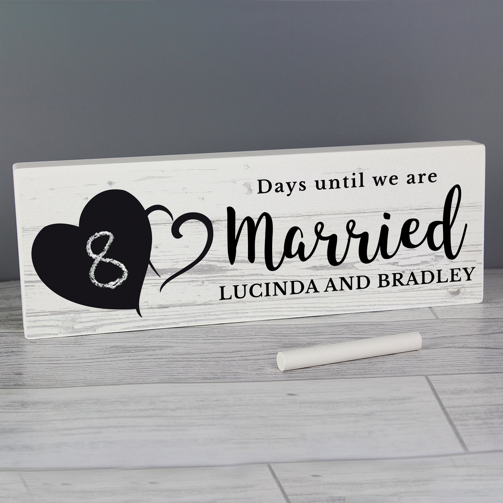 This wooden block sign can be personalised with 3 lines of text, with up to 20 characters per line.