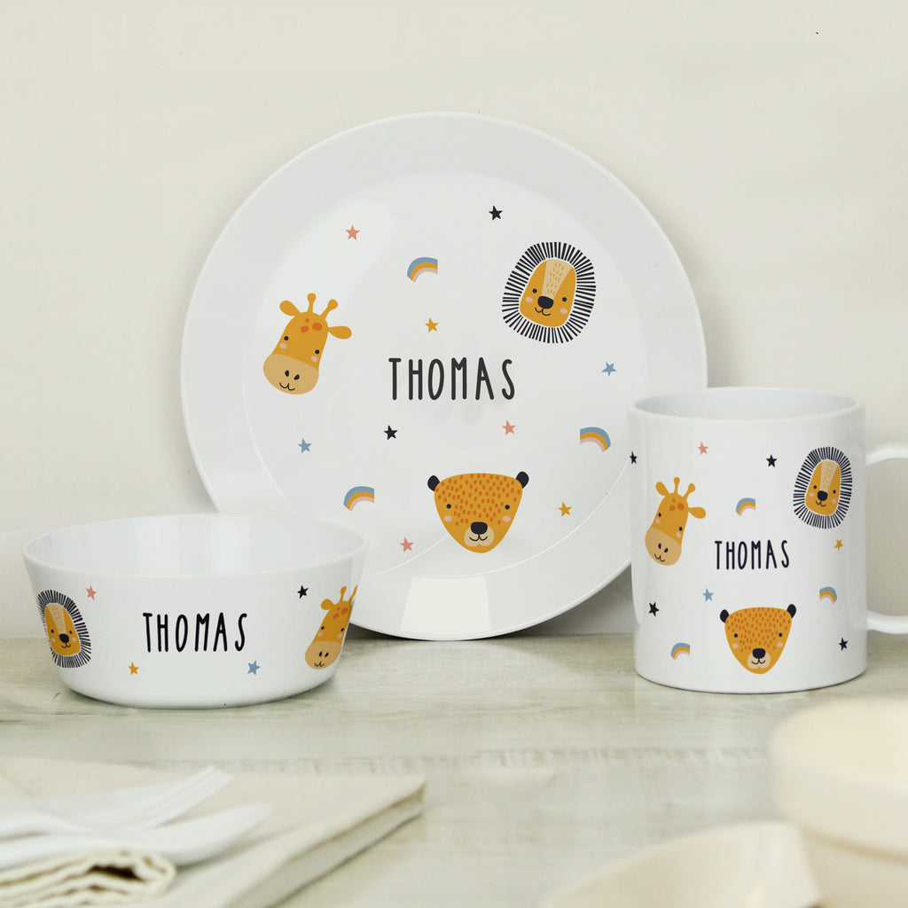 Personalised Safari Animals Plastic Childrens Breakfast Set