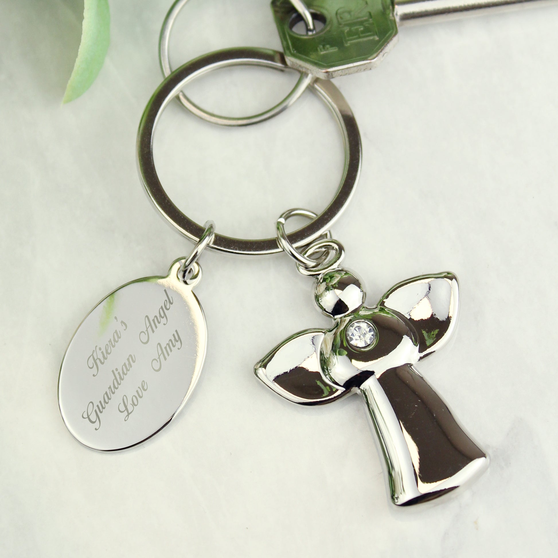 Personalised Silver Plated Angel Keyring