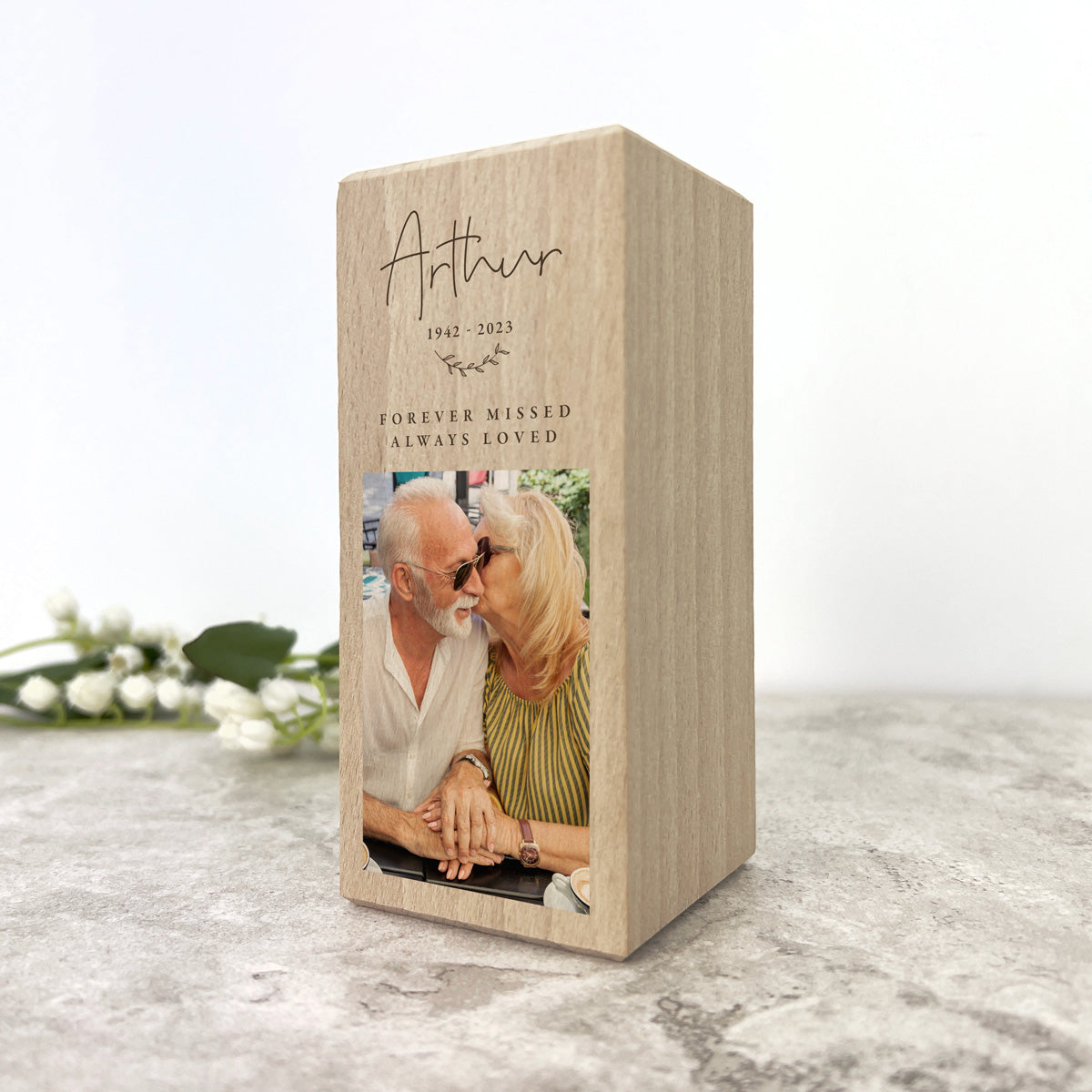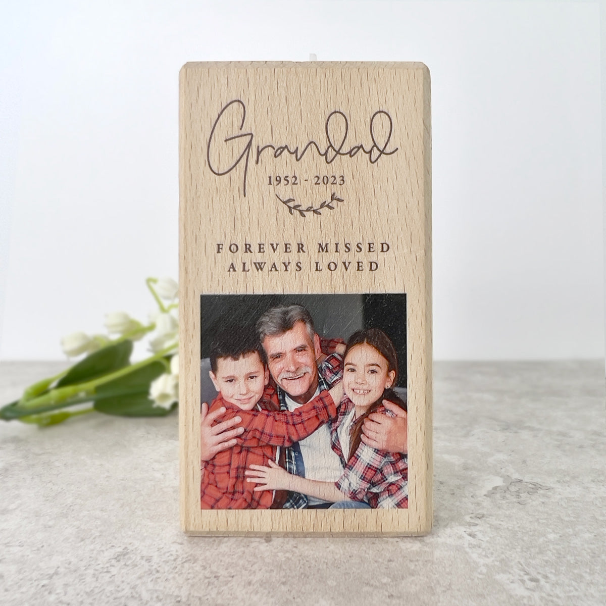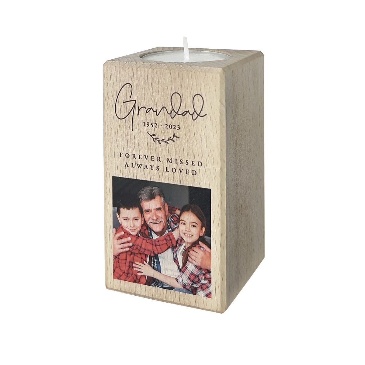 Personalised Solid Wooden Photo Memorial Tea Light Holder - 2 Sizes